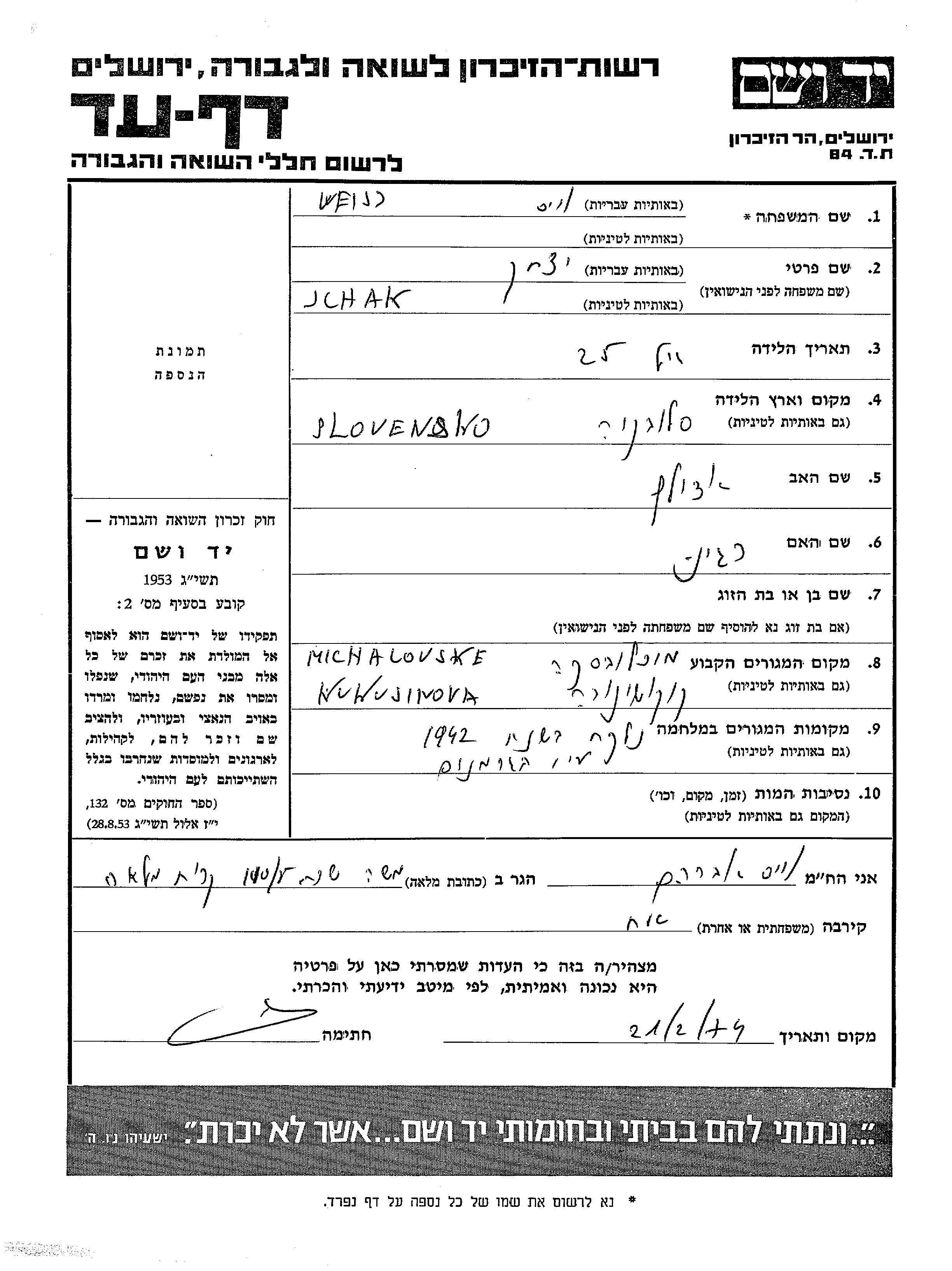 Jchak wurde in der Schoah ermordet. Todesort: unbekannt im Jahr 1942.