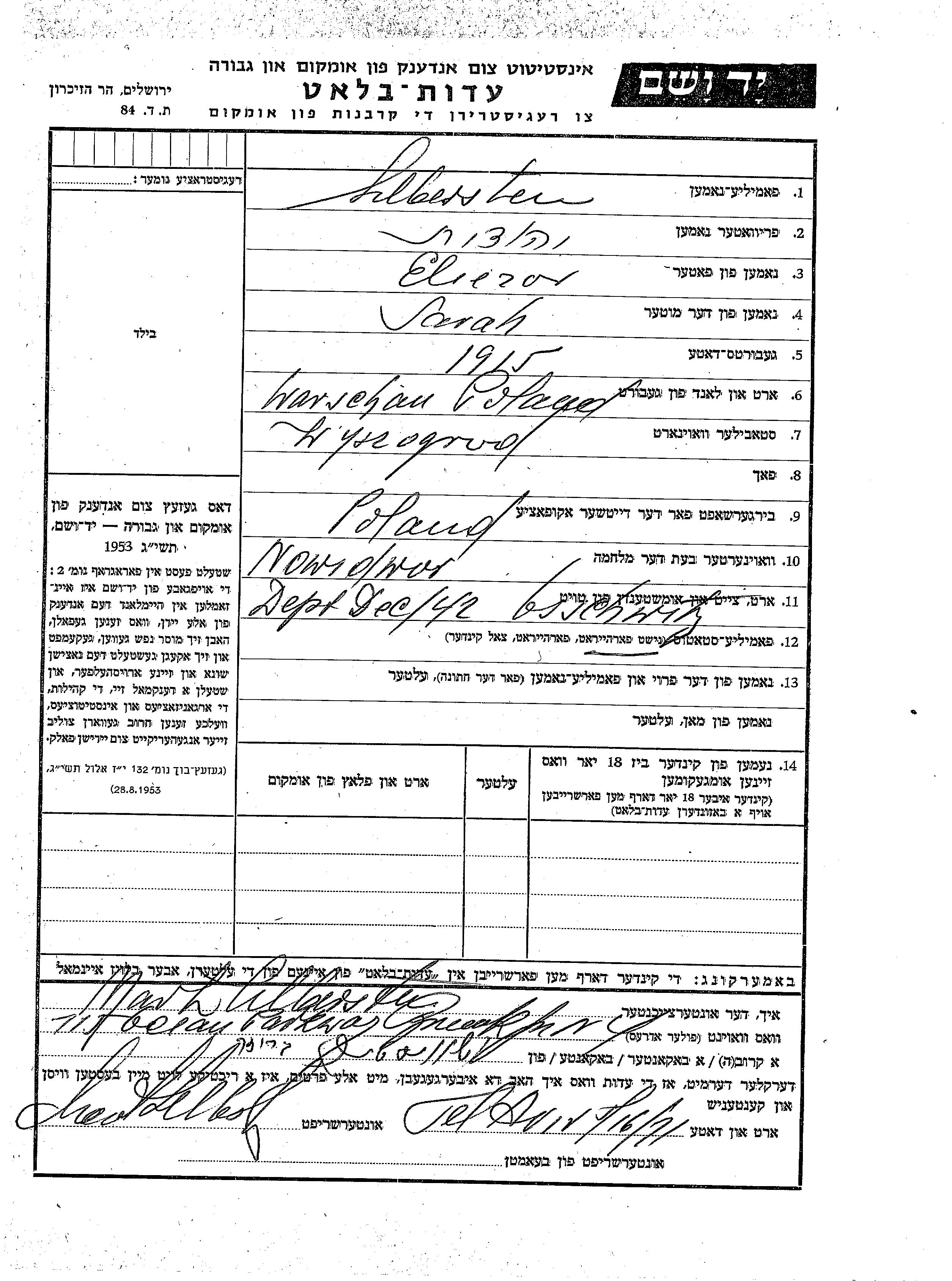 Silberstein Yehudit 1915 Wyszogrod, Polen Gedenkblatt
