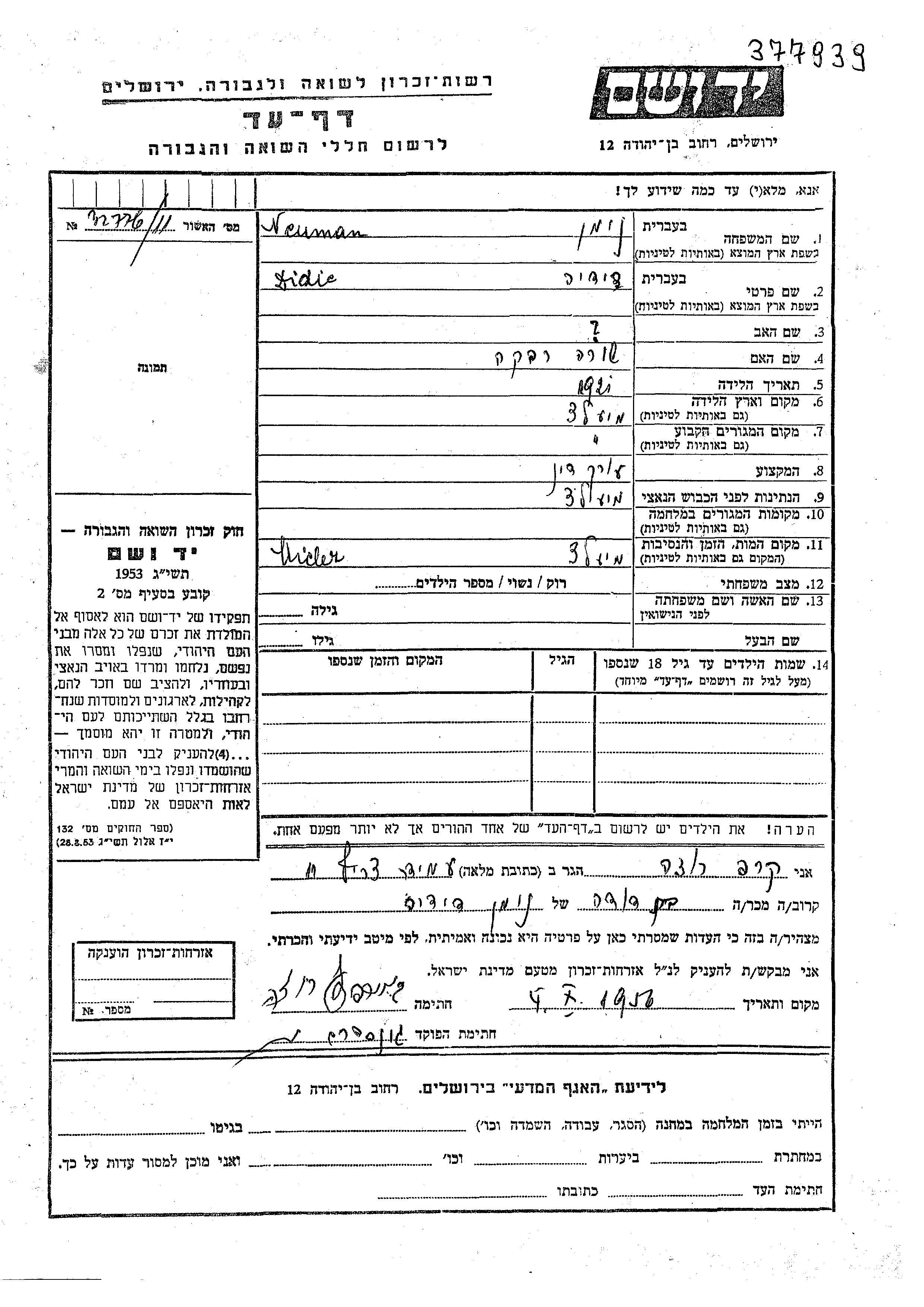 Didia Neuman Niman wurde im Jahr 1921 in Mielec, Polen geboren. Er war der Sohn von Shura Rivka. Er war Rechtsanwalt/rechtsanwältin. Vor dem Zweiten Weltkrieg lebte er in Mielec, Polen.