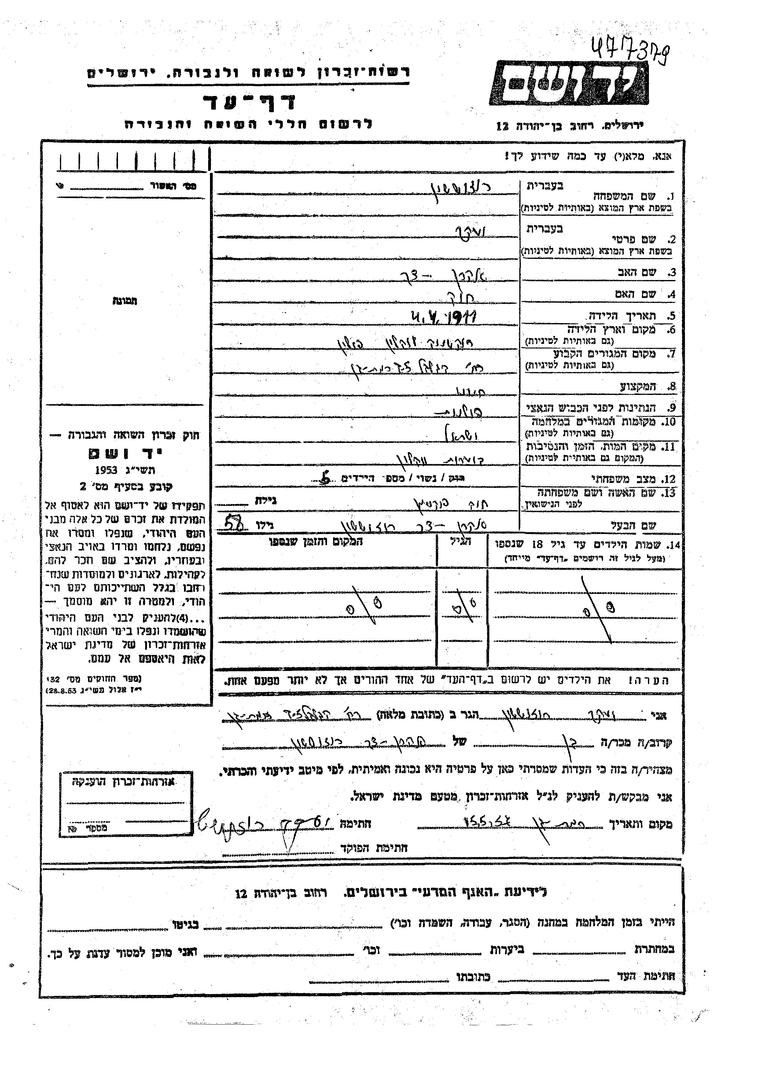 Aharon Dov wurde in der Schoah ermordet.
