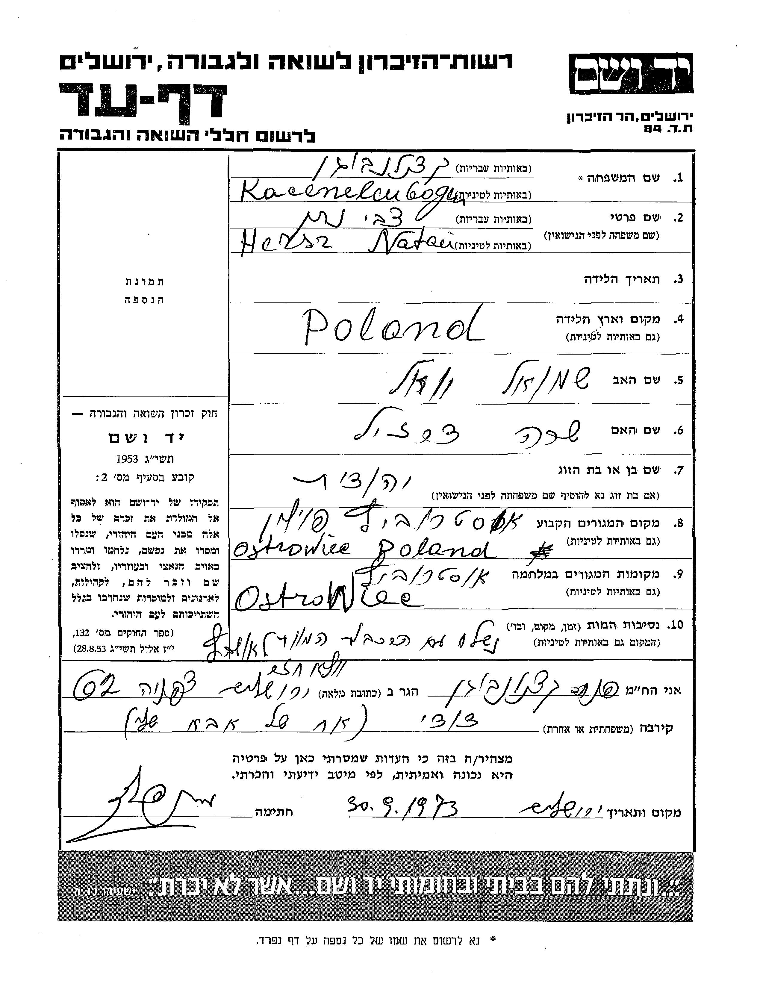 Kacenelenbogen Hersz Tzvi Natan Ostrowitz, Polen Gedenkblatt