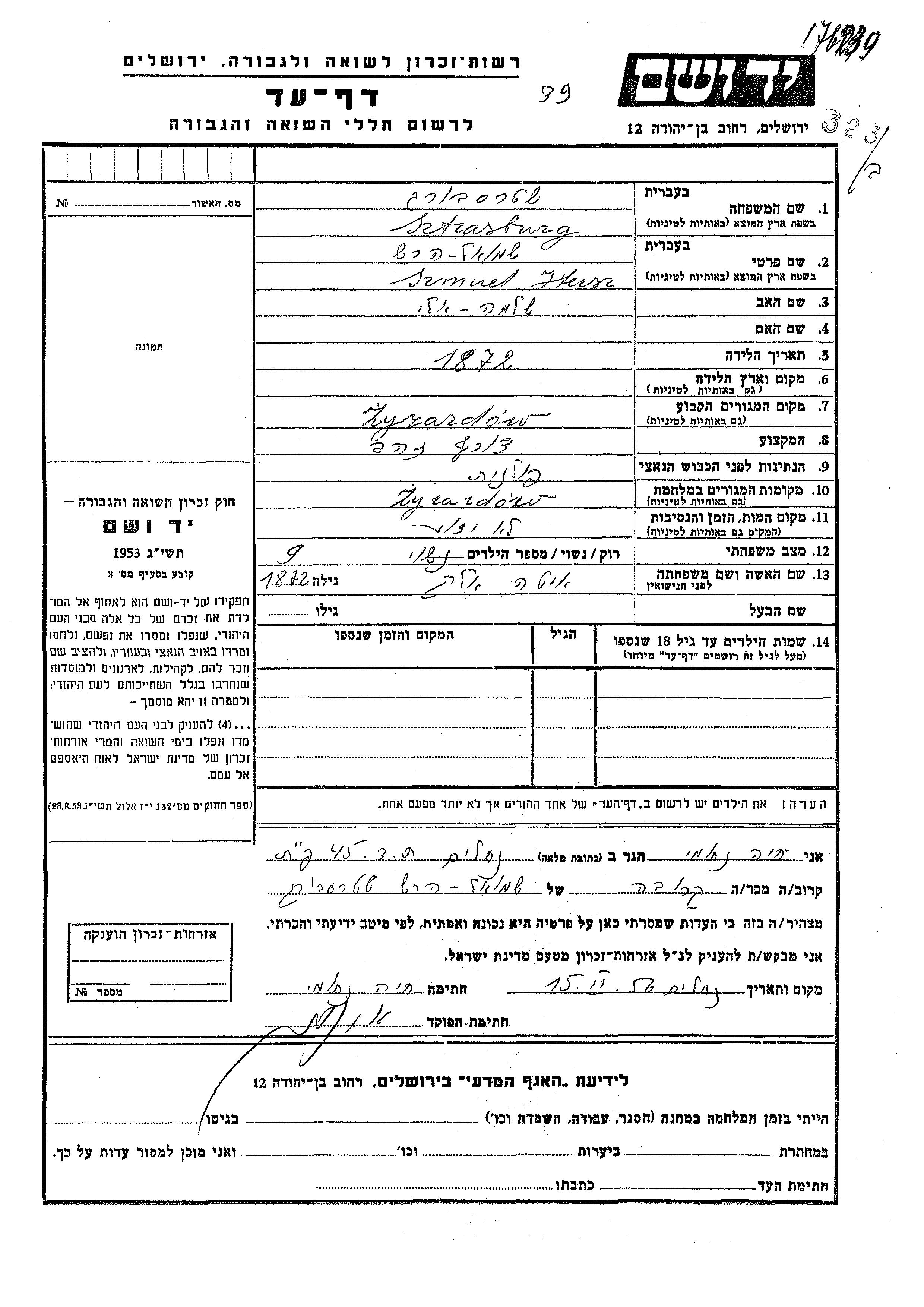 Szmuel Hersz wurde in der Schoah ermordet.