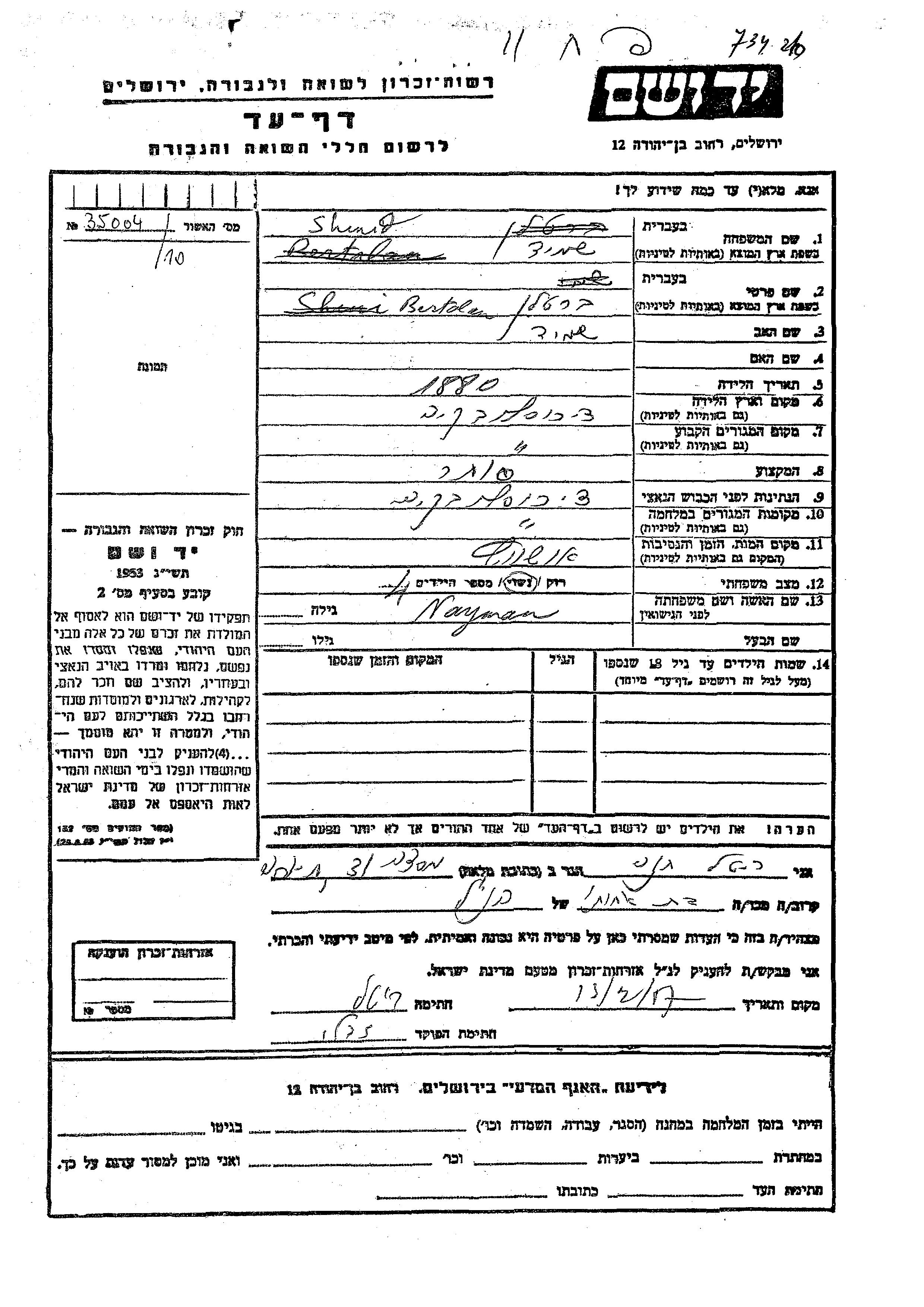 Bertalan Shmid wurde im Jahr 1880 in Tschechoslowakei geboren. Er war Kaufmann/-frau und Verheiratet. Vor dem Zweiten Weltkrieg lebte er in Tschechoslowakei. Während des Krieges war er in Tschechoslowakei.