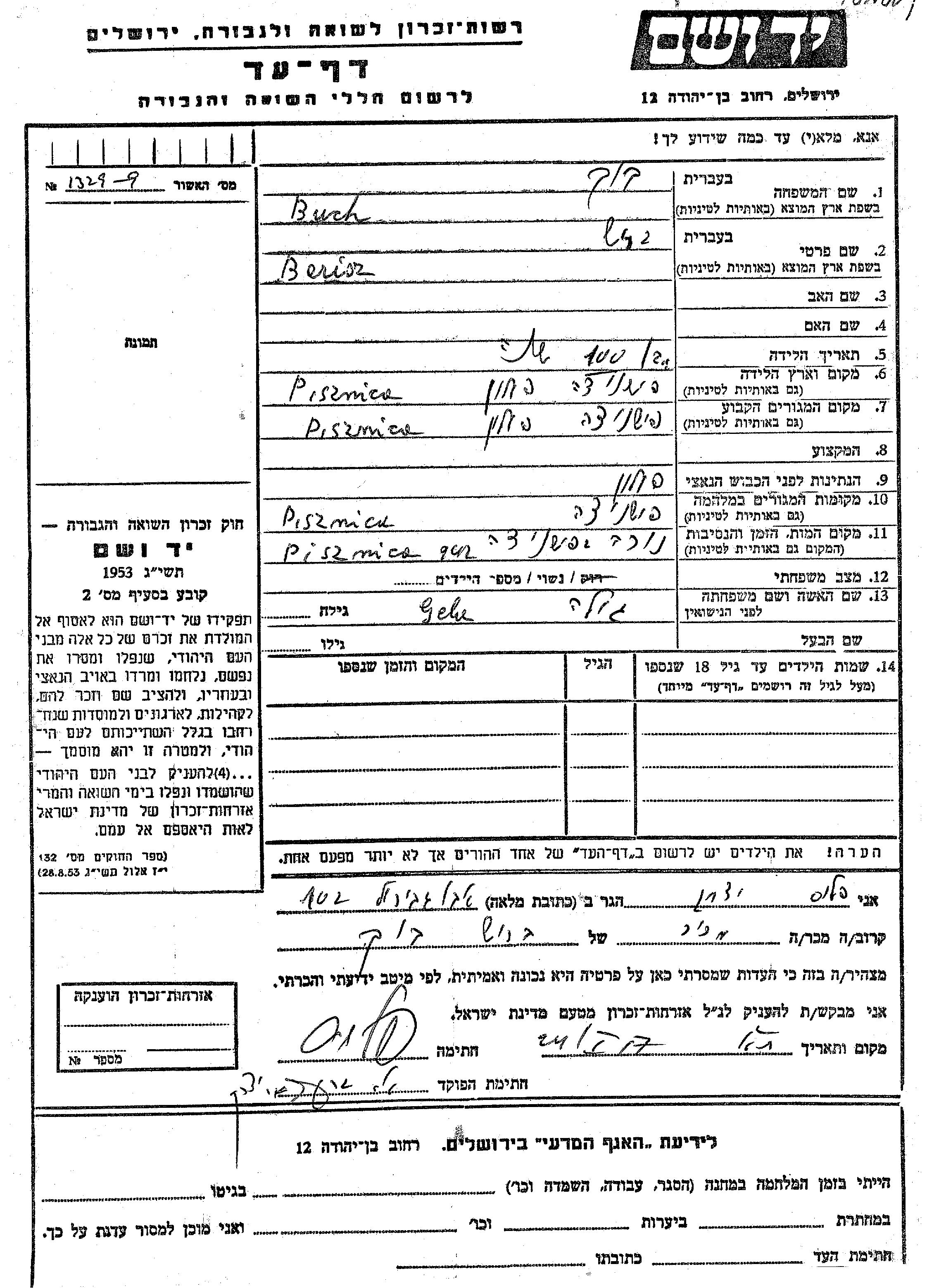 Berisz wurde in der Schoah ermordet. Todesort: Pisznica, Polen im Jahr 1942.