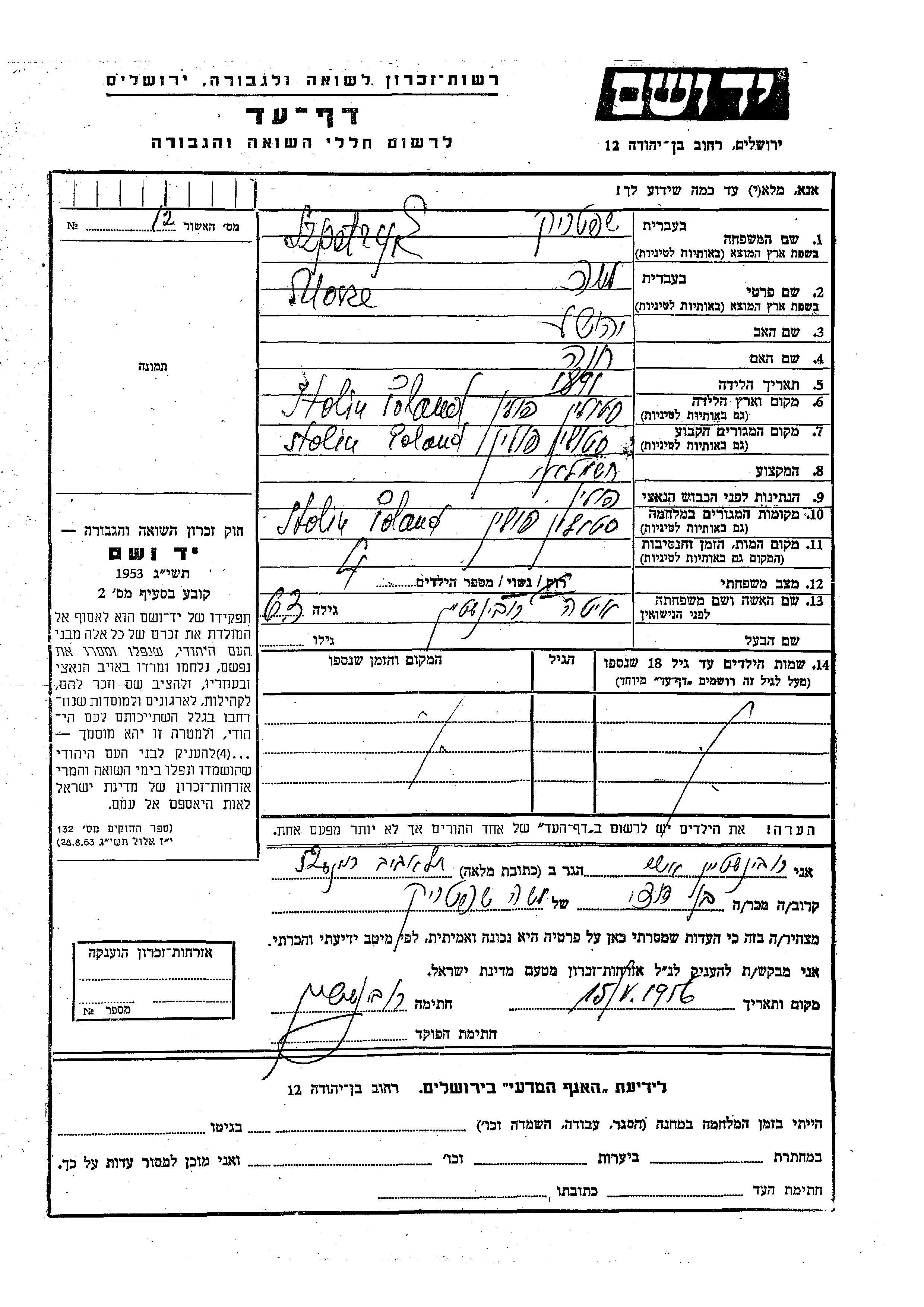 Mosze Szpetryk wurde im Jahr 1891 in Stolin, Polen geboren. Er war der Sohn von Yehoshua und Khana. Er war Elektriker/-in und mit Ita, geb. Rubinshtein Verheiratet. Vor dem Zweiten Weltkrieg lebte er in Stolin, Polen. Während des Krieges war er in Stolin, Polen.