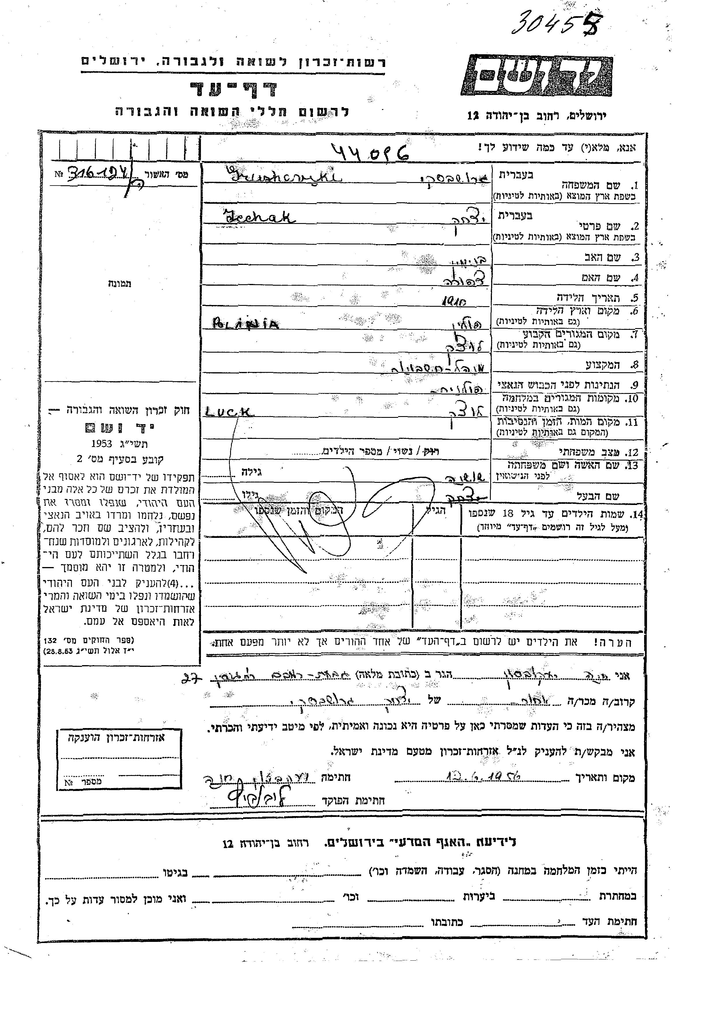 Icchak Grushewski wurde im Jahr 1910 in Polen geboren. Er war der Sohn von Beniamin und Tzipora. Er war Buchhalter/-in und mit Shoshana Verheiratet. Vor dem Zweiten Weltkrieg lebte er in Luck, Polen. Während des Krieges war er in Luck, Polen.