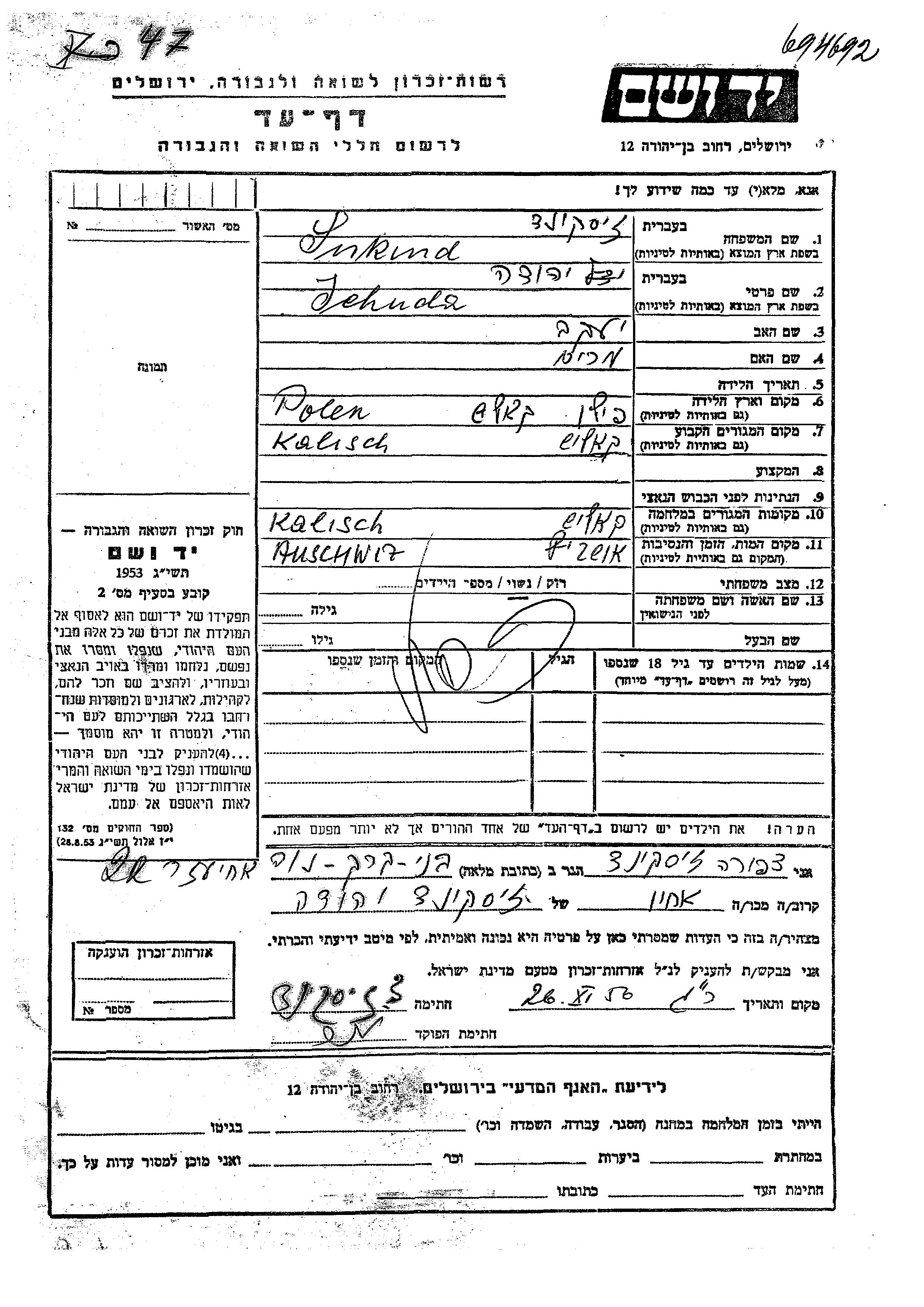 Jehuda wurde in der Schoah ermordet. Todesort: Auschwitz, Polen.