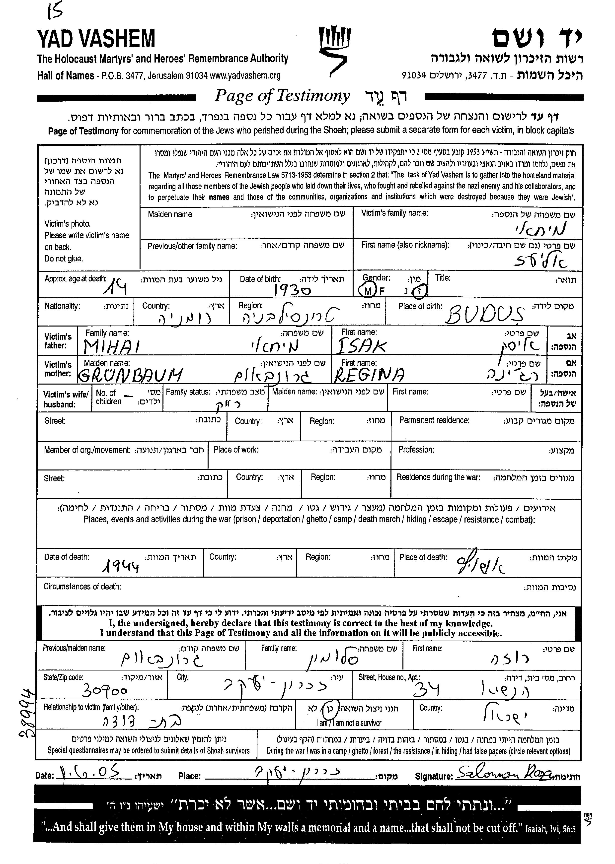 Suche nach einem Todesjahr im Zeitraum der Holocaust: 1933 bis 1945. Bitte wählen Sie 'Exakt' im Auswahlmenü, um nur nach einem einzelnen Jahr zu suchen, alternativ können Sie die flexibleren Optionen '+/- 2 Jahre' oder '+/- 5 Jahre' wählen.