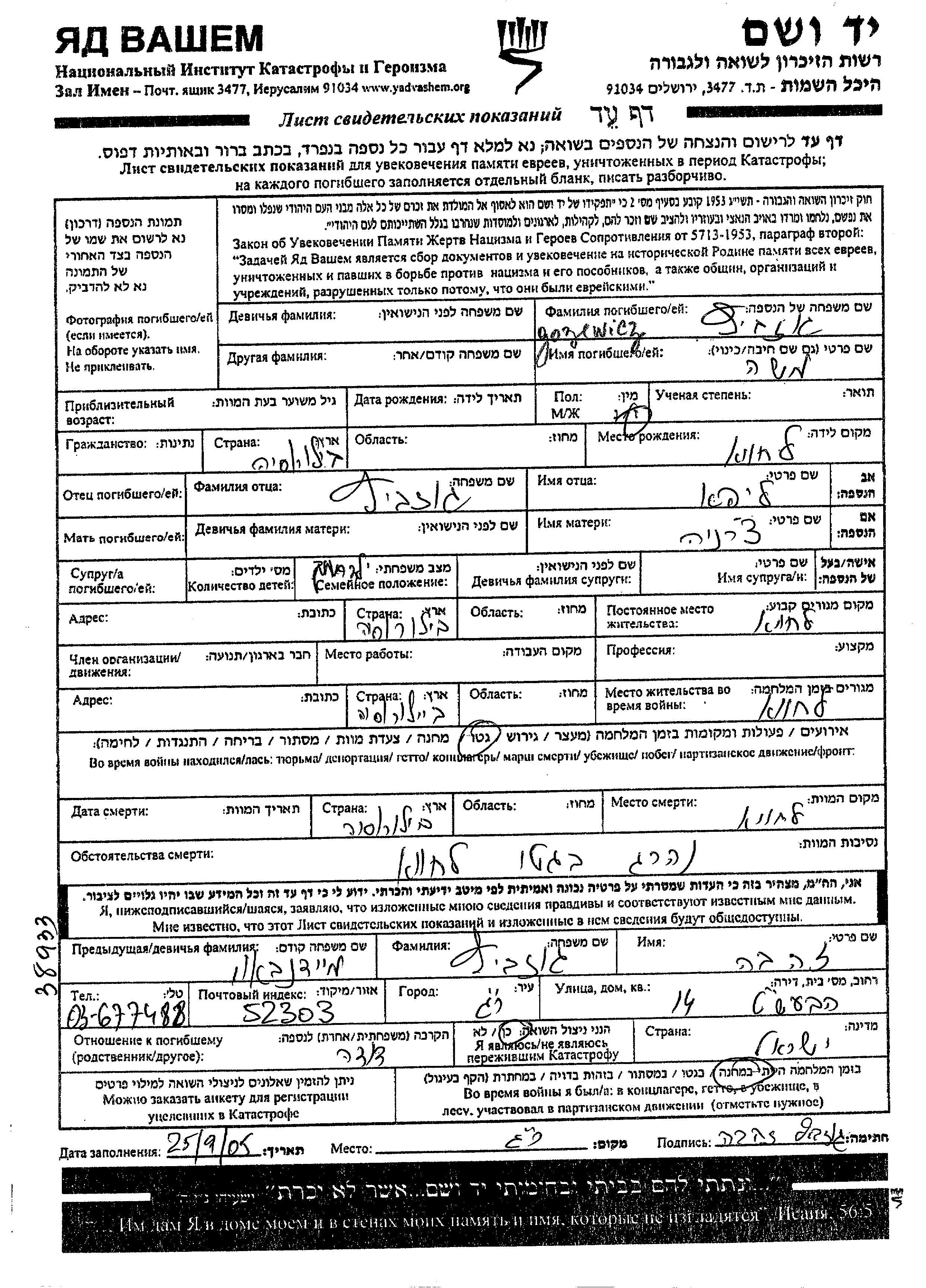 Moshe wurde in der Schoah ermordet. Todesort: Lachva, Polen.
