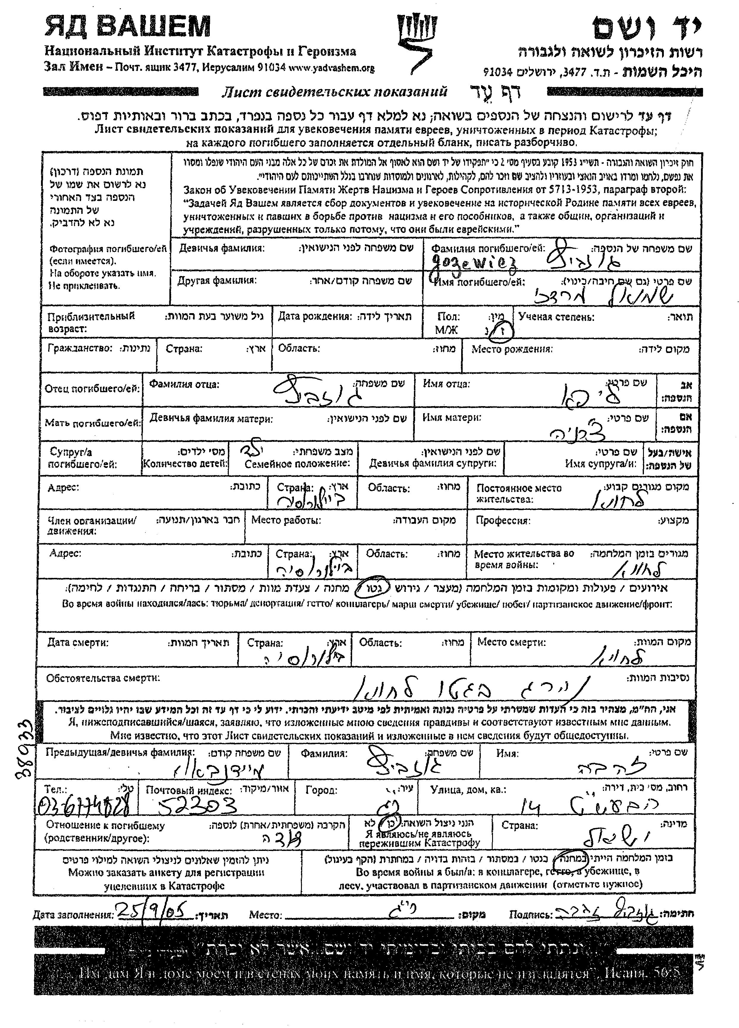 Gozewicz Mordekhai Shmuel Lachwa, Polen Gedenkblatt