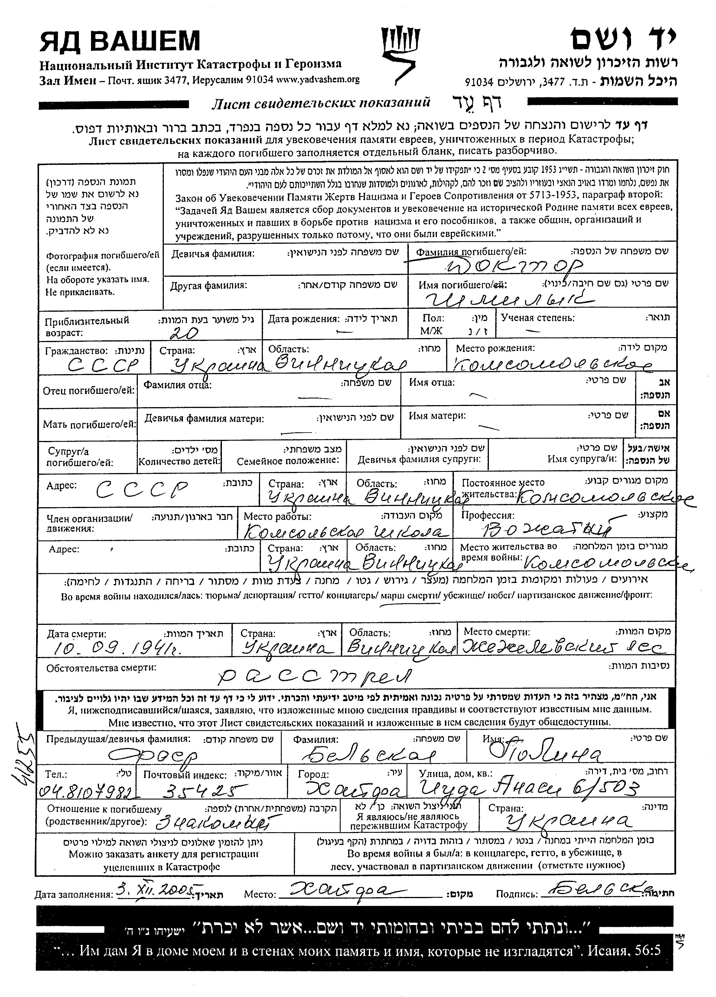 Shmilyk wurde in der Schoah ermordet. Todesort: Vinnitsa, Ukraine (UdSSR) im Jahr 10/09/1941.