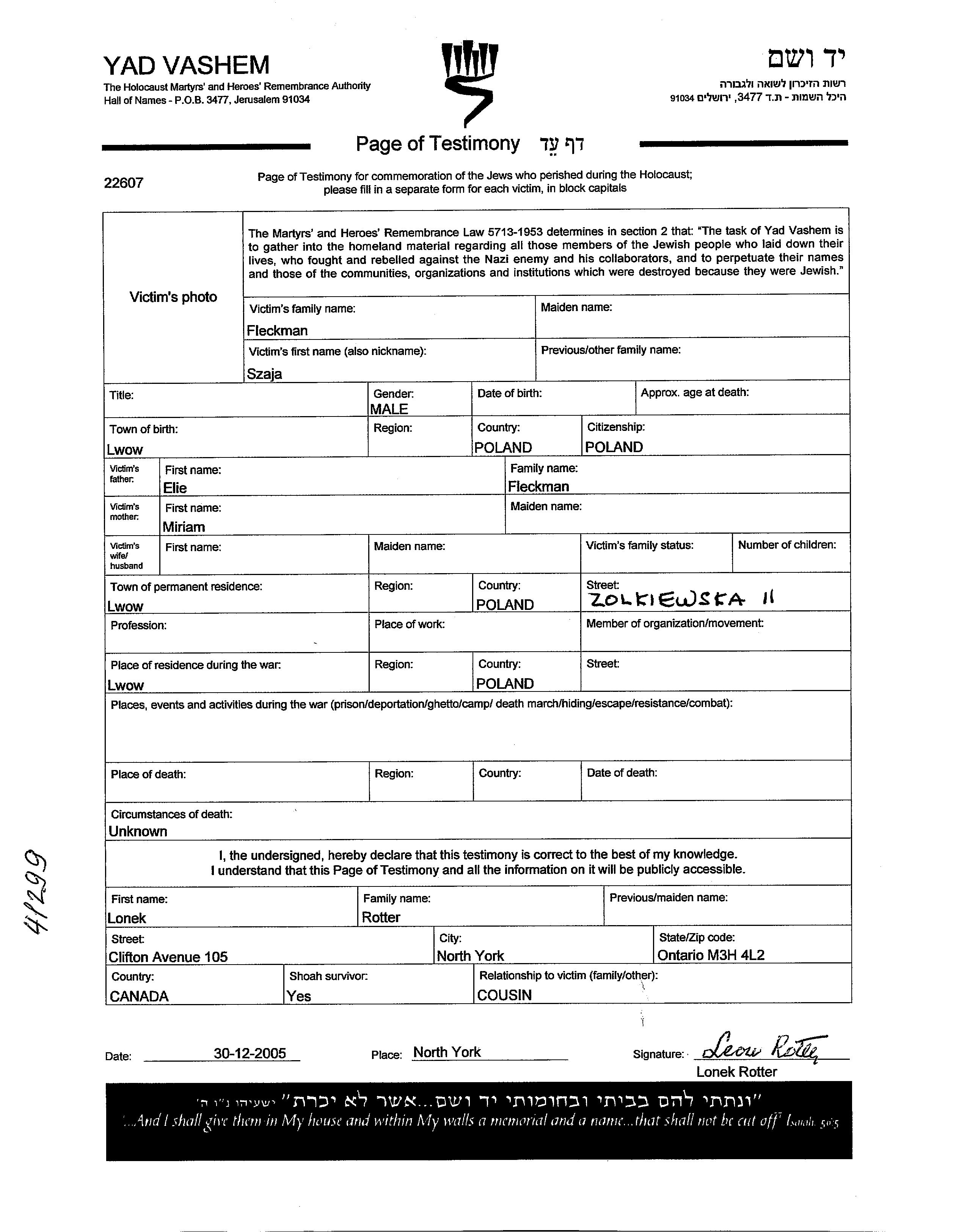 Fleckman Szaja Lwow, Polen Gedenkblatt (digital, unterzeichnet)