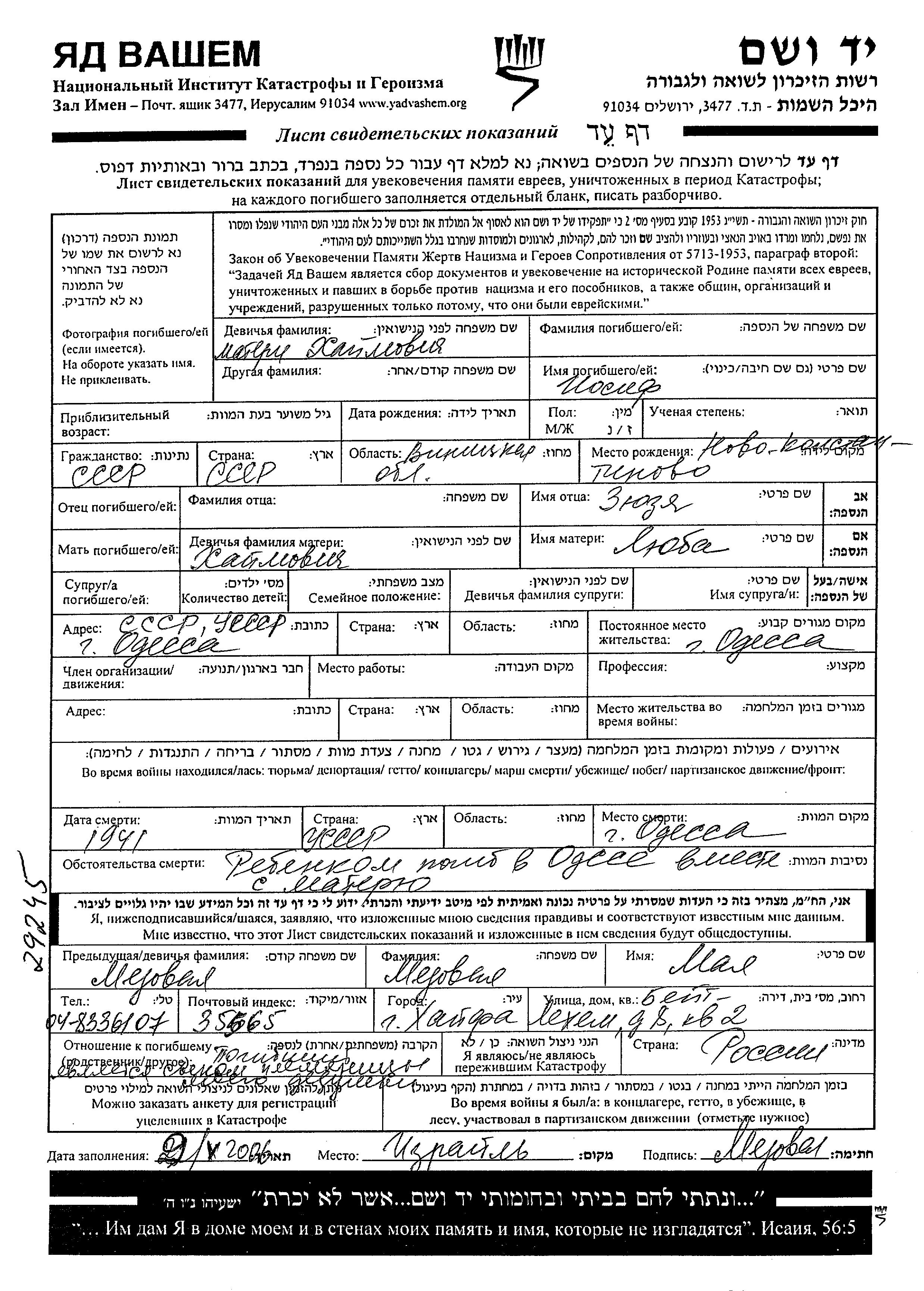 Iosif wurde in der Schoah ermordet. Todesort: Odessa, Ukraine (UdSSR) im Jahr 1941.