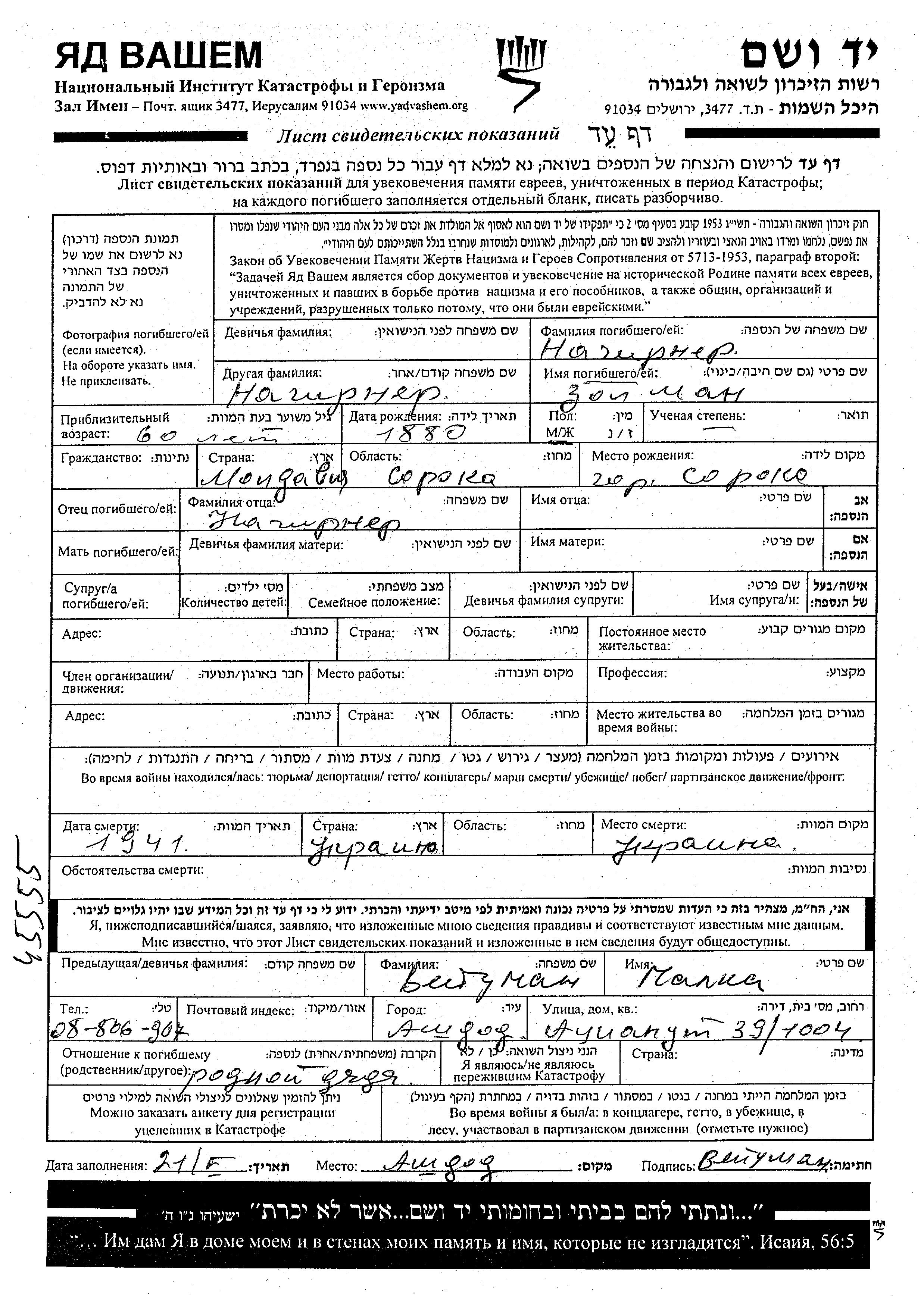 Zolman wurde in der Schoah ermordet. Todesort: Ukraine (UdSSR) im Jahr 1941.