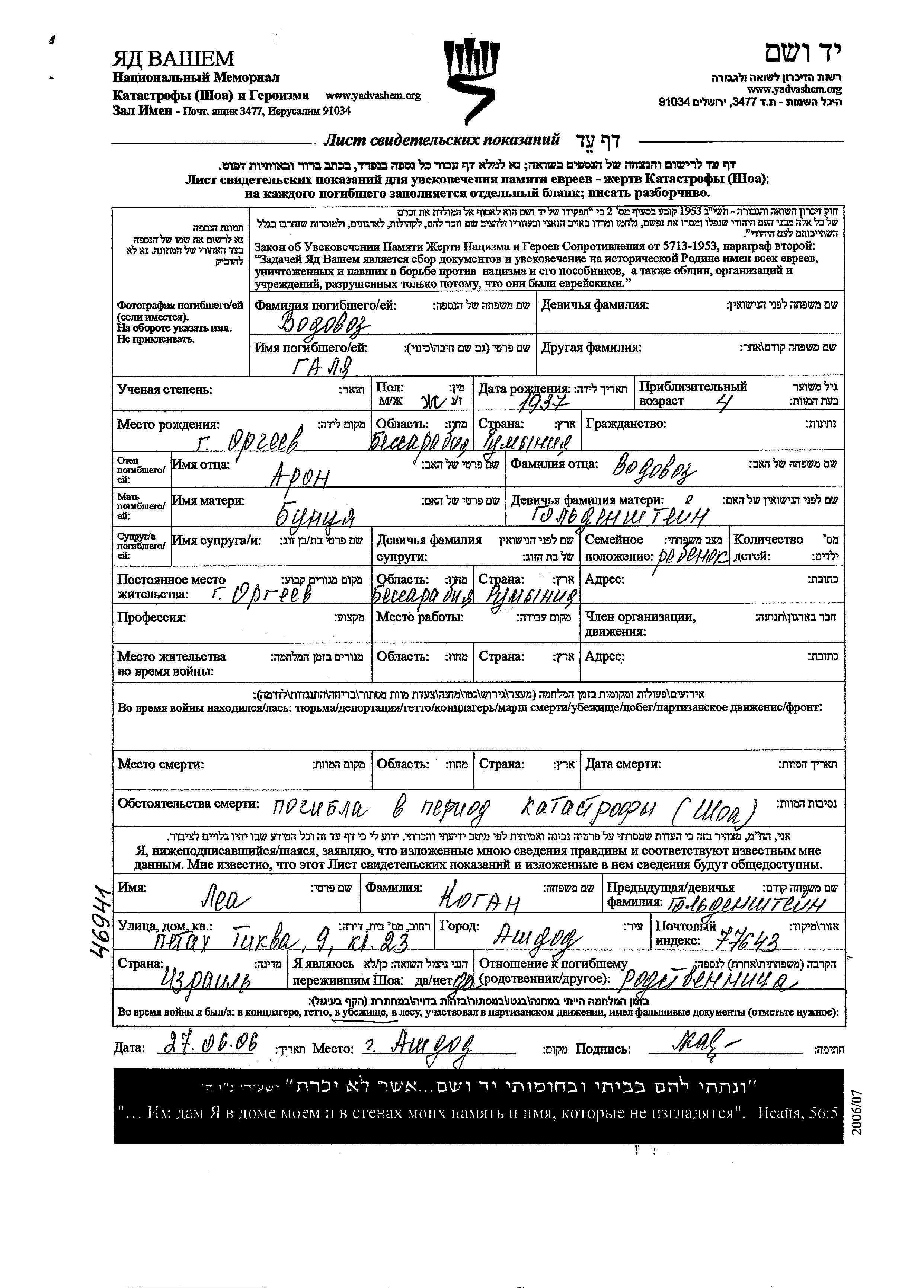 Galya Vodovoz wurde im Jahr 1937 in Orgeyev, Rumänien geboren. Sie war die Tochter von Aron und Buntzya, geb. Goldenshtein. Sie war Kind. Vor dem Zweiten Weltkrieg lebte sie in Orgeyev, Rumänien.