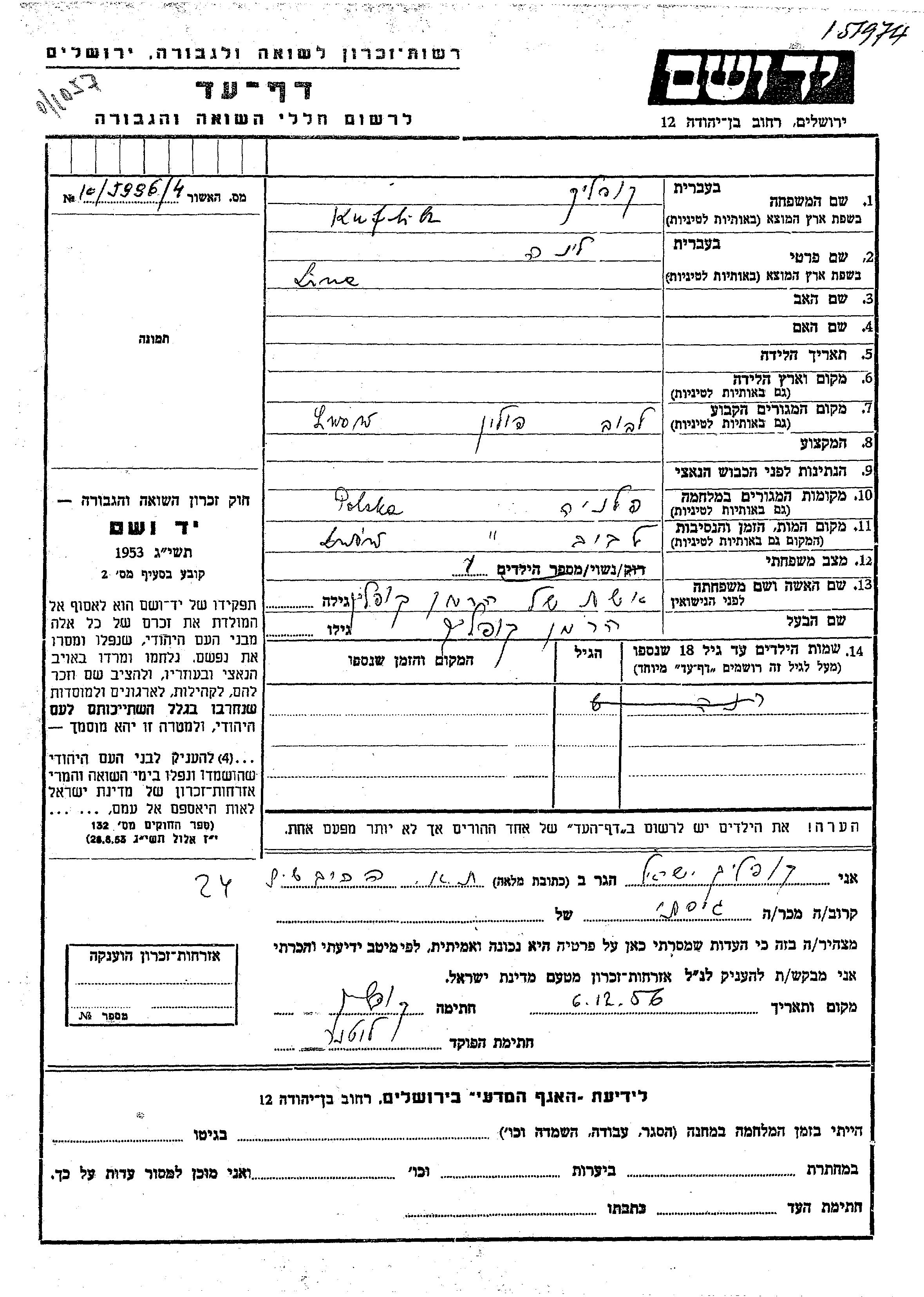 Kuflik Koplik Lina unbekannter Ort, Gedenkblatt