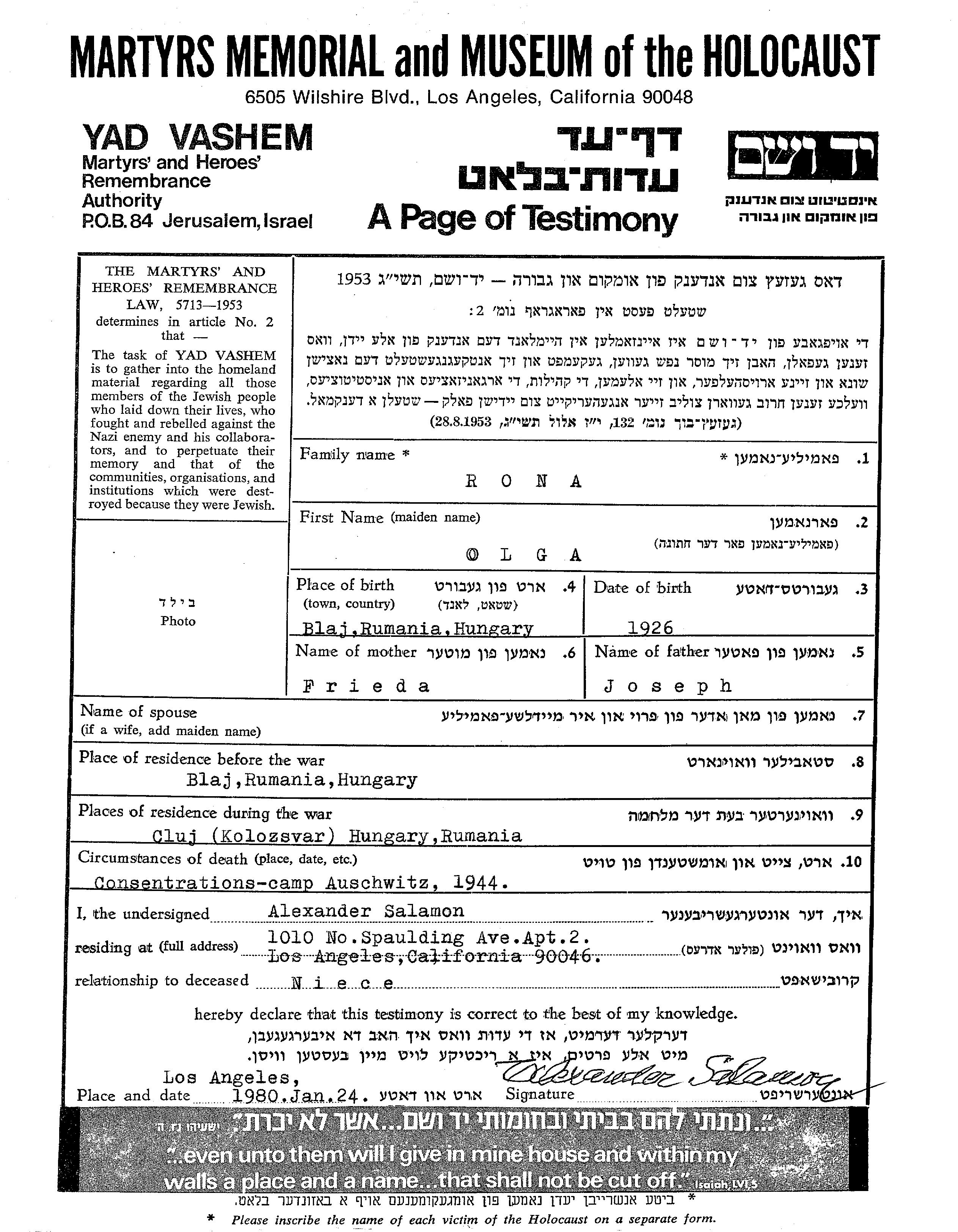Rona Olga 1926 Blaj, Rumänien Gedenkblatt