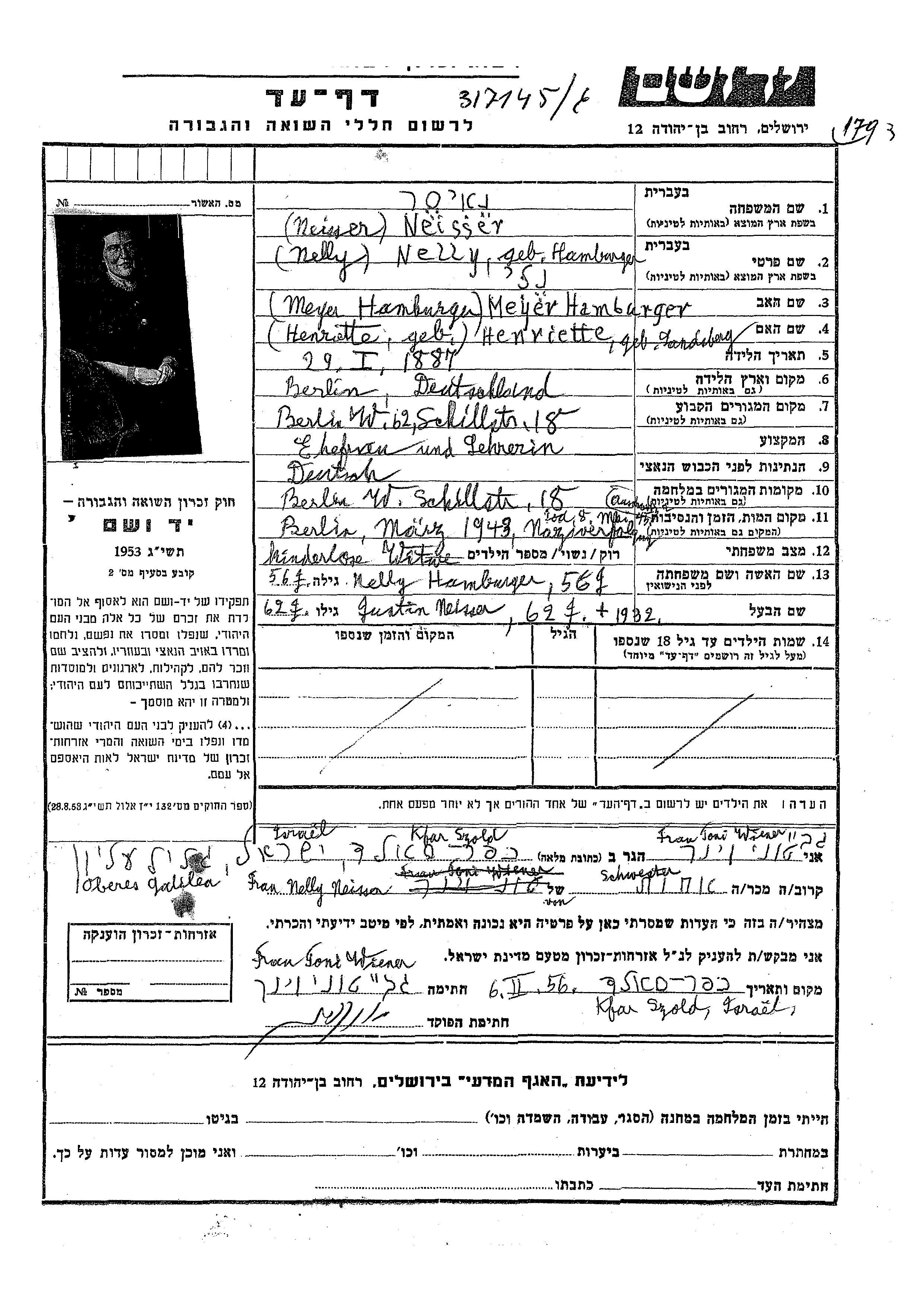 Nelly Neisser, geb. Hamburger wurde im Jahr 1887 in Berlin, Deutsches Reich geboren. Sie war die Tochter von Mayer und Henriette. Vor dem Zweiten Weltkrieg lebte sie in Berlin, Deutsches Reich. Während des Krieges war sie in Berlin, Deutsches Reich.