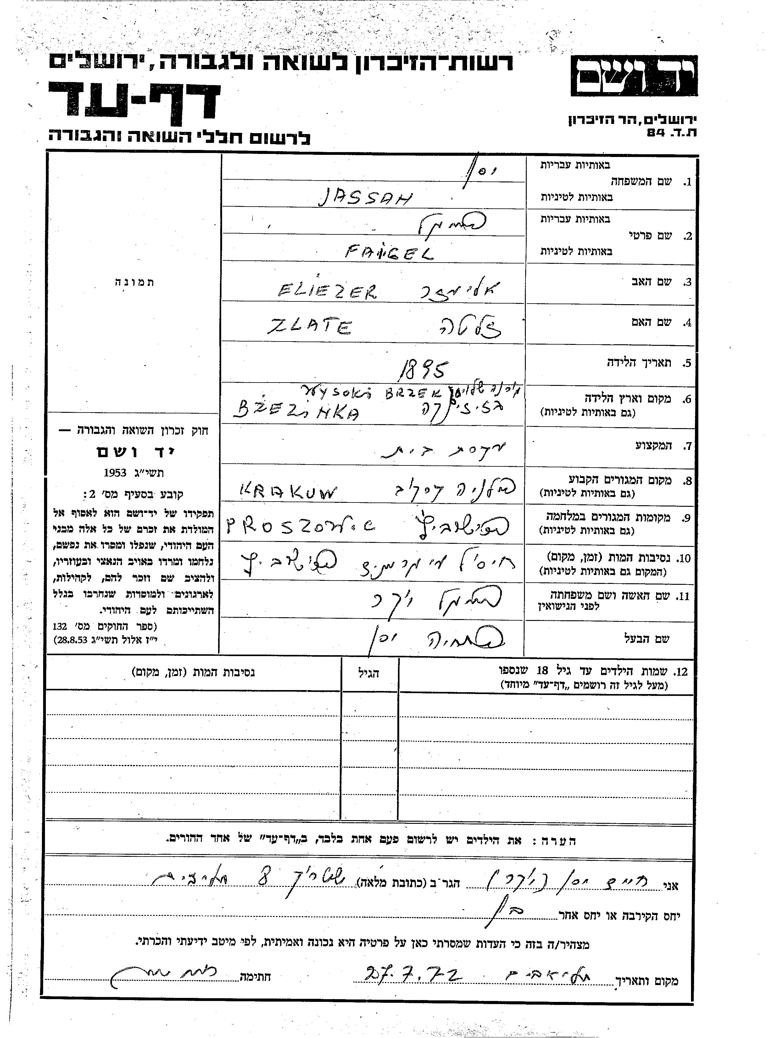 Faigel wurde in der Schoah ermordet. Todesort: Proszowice, Polen.