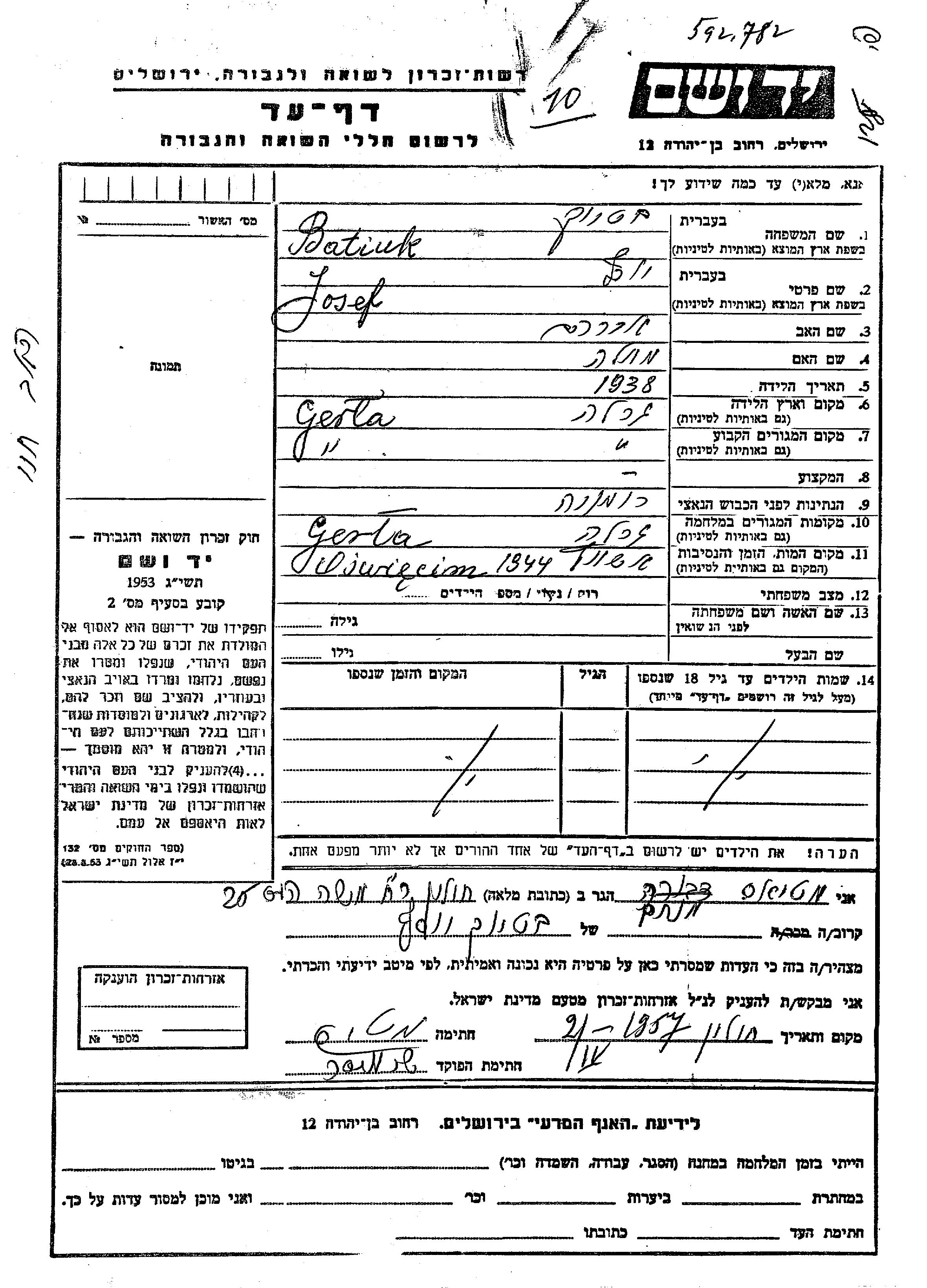Josef Avishai Ben Batino wurde im Jahr 1896 in Privigue, Tschechoslowakei geboren. Er war der Sohn von Rafael und Khana. Er war Kaufmann/-frau und mit Ester, geb. Samuel Verheiratet. Vor dem Zweiten Weltkrieg lebte er in Yanina, Griechenland. Während des Krieges war er in Yanina, Griechenland.