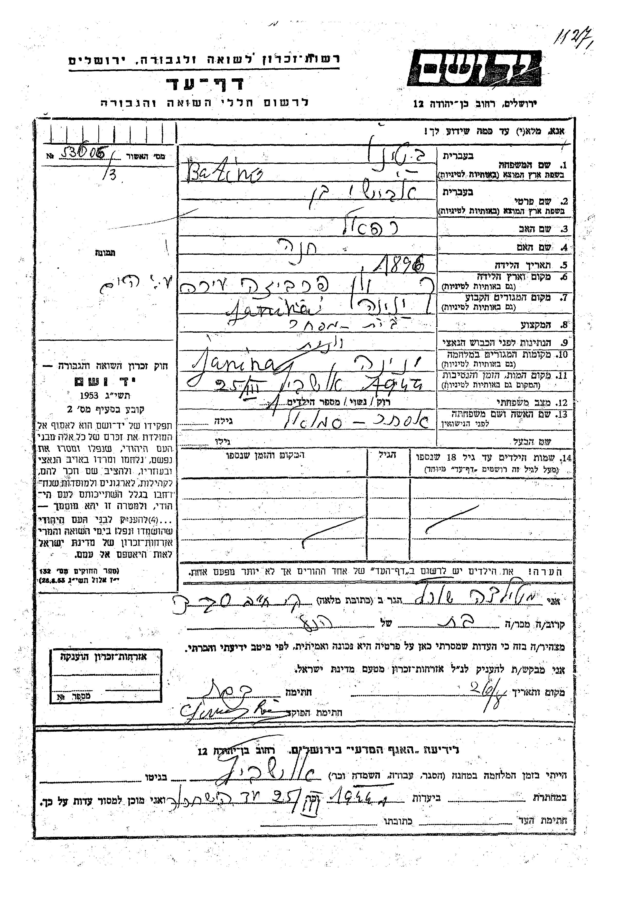 Batino Avishai 1896 Yanina, Griechenland Gedenkblatt