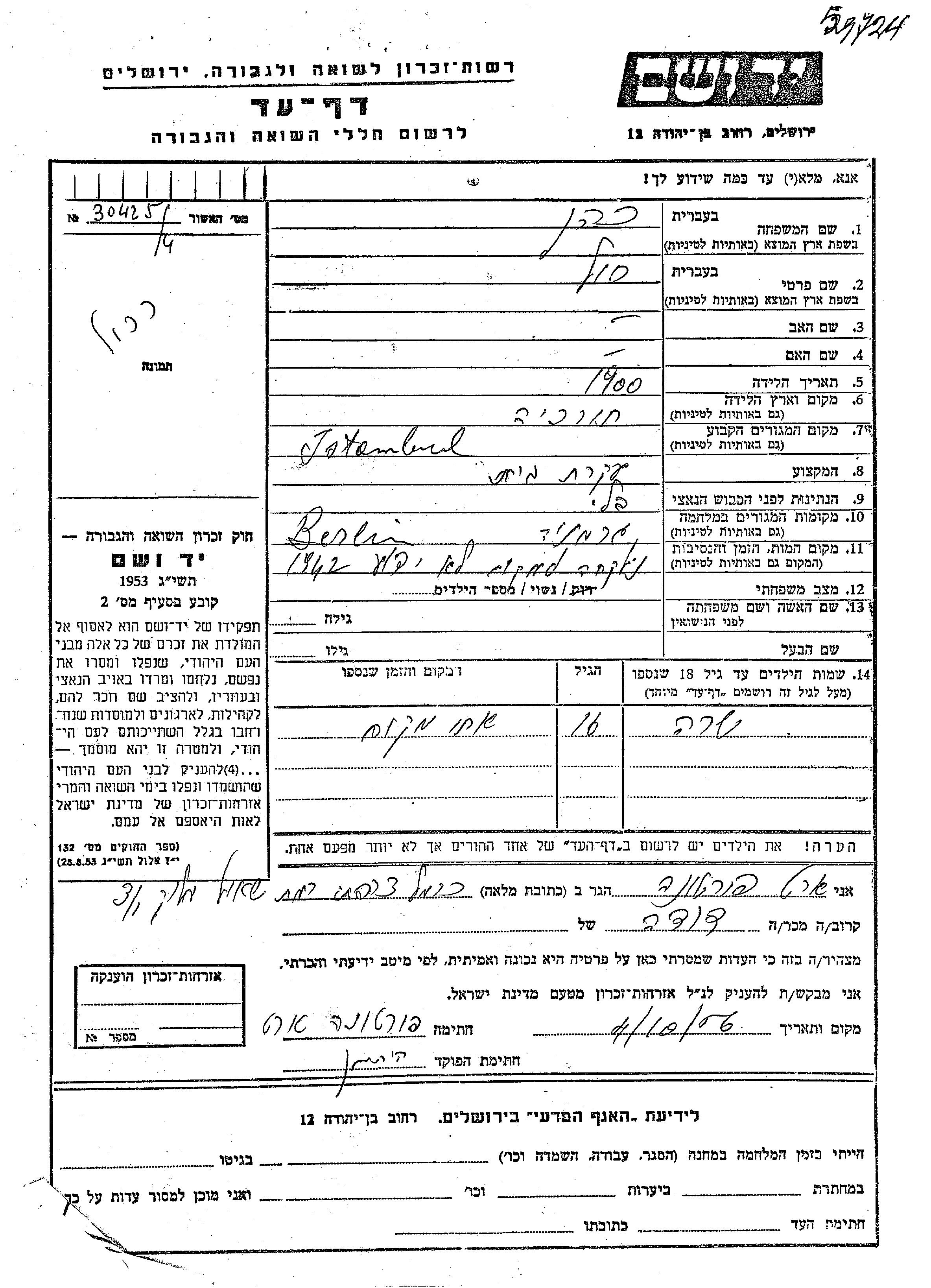 Khil wurde in der Schoah ermordet. Todesort: unbekannt im Jahr 1942.