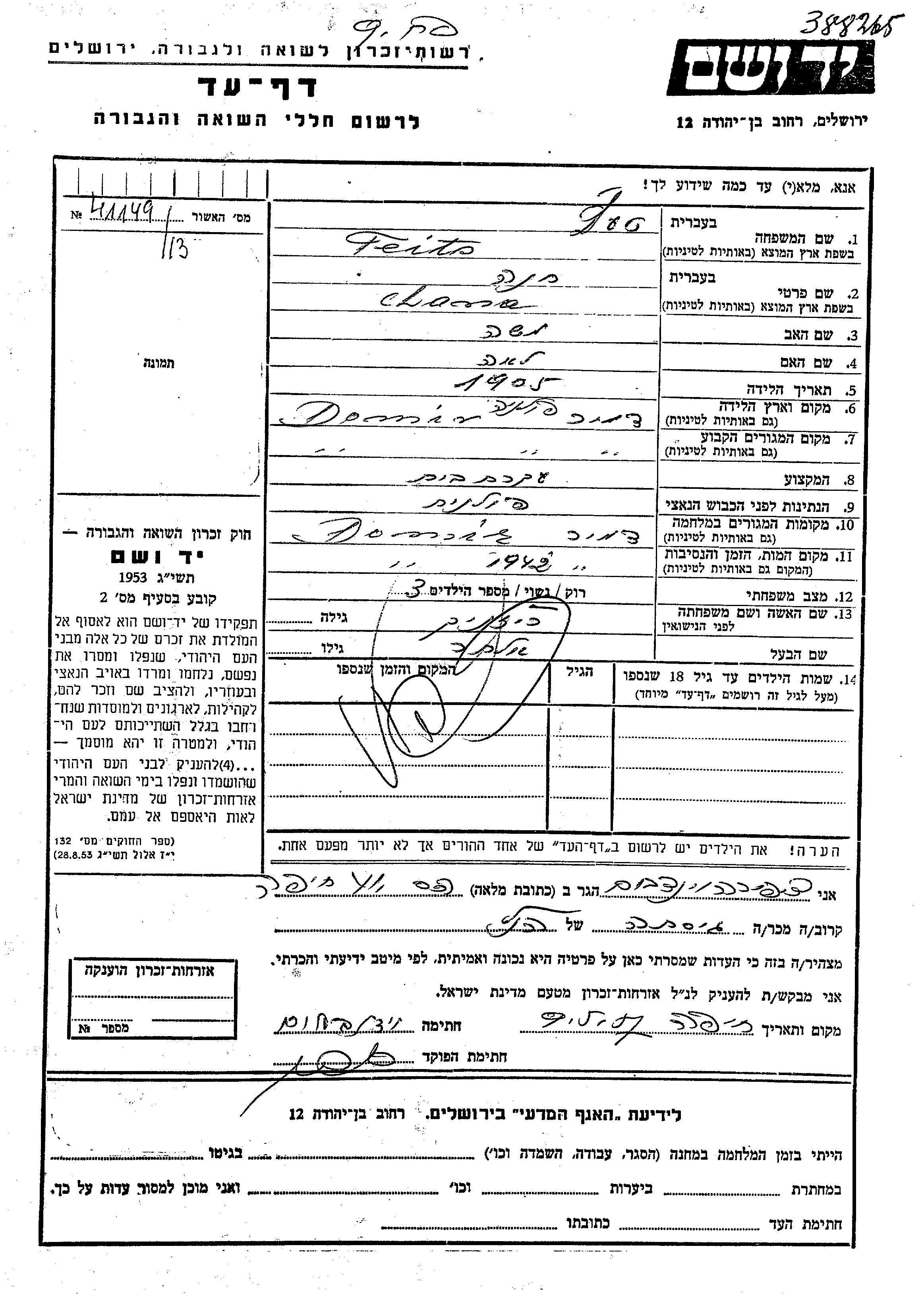 Yad Vashem - Gedenkblätter Sammlung