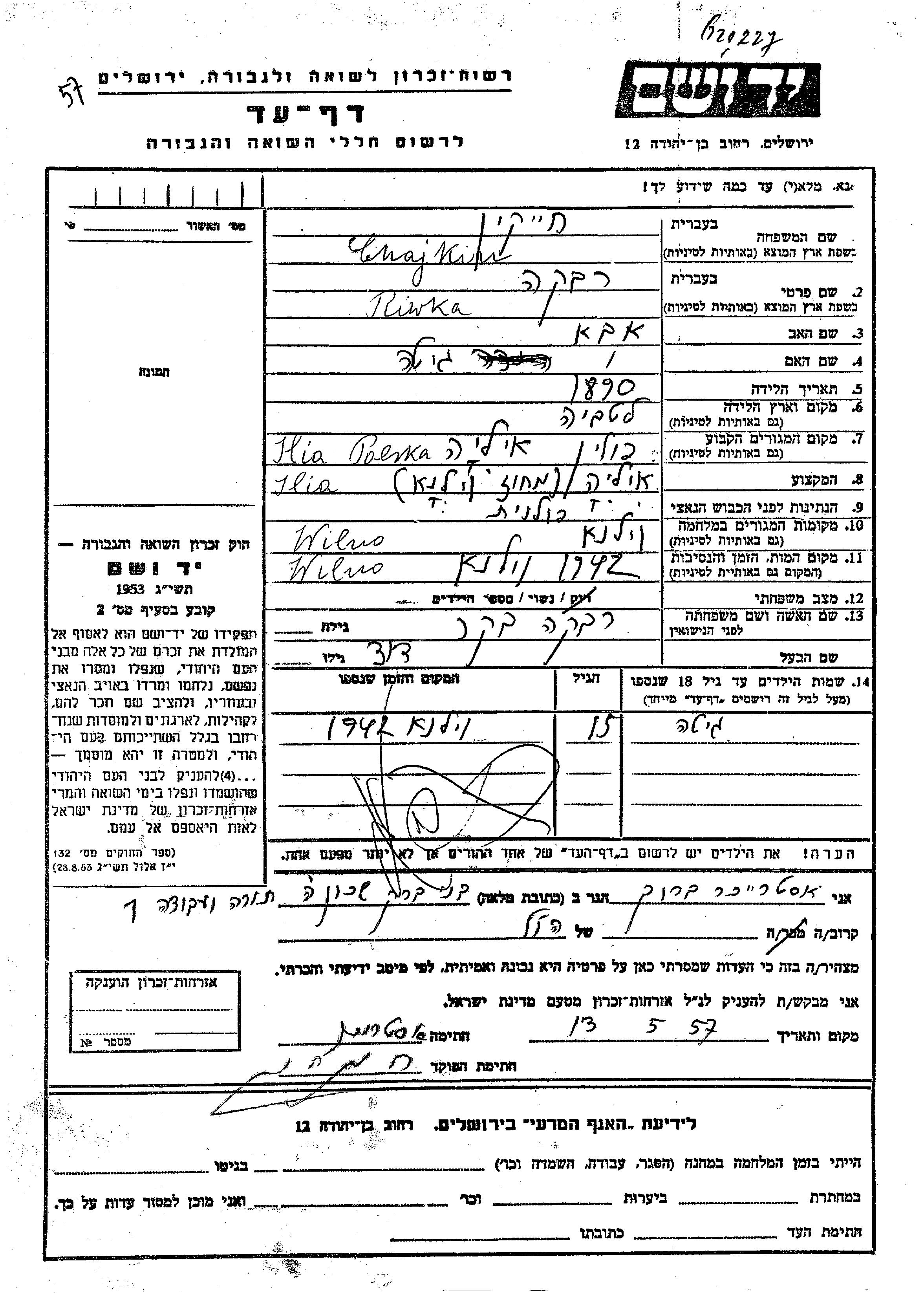 Riwka wurde in der Schoah ermordet. Todesort: Wilno, Polen im Jahr 1942.