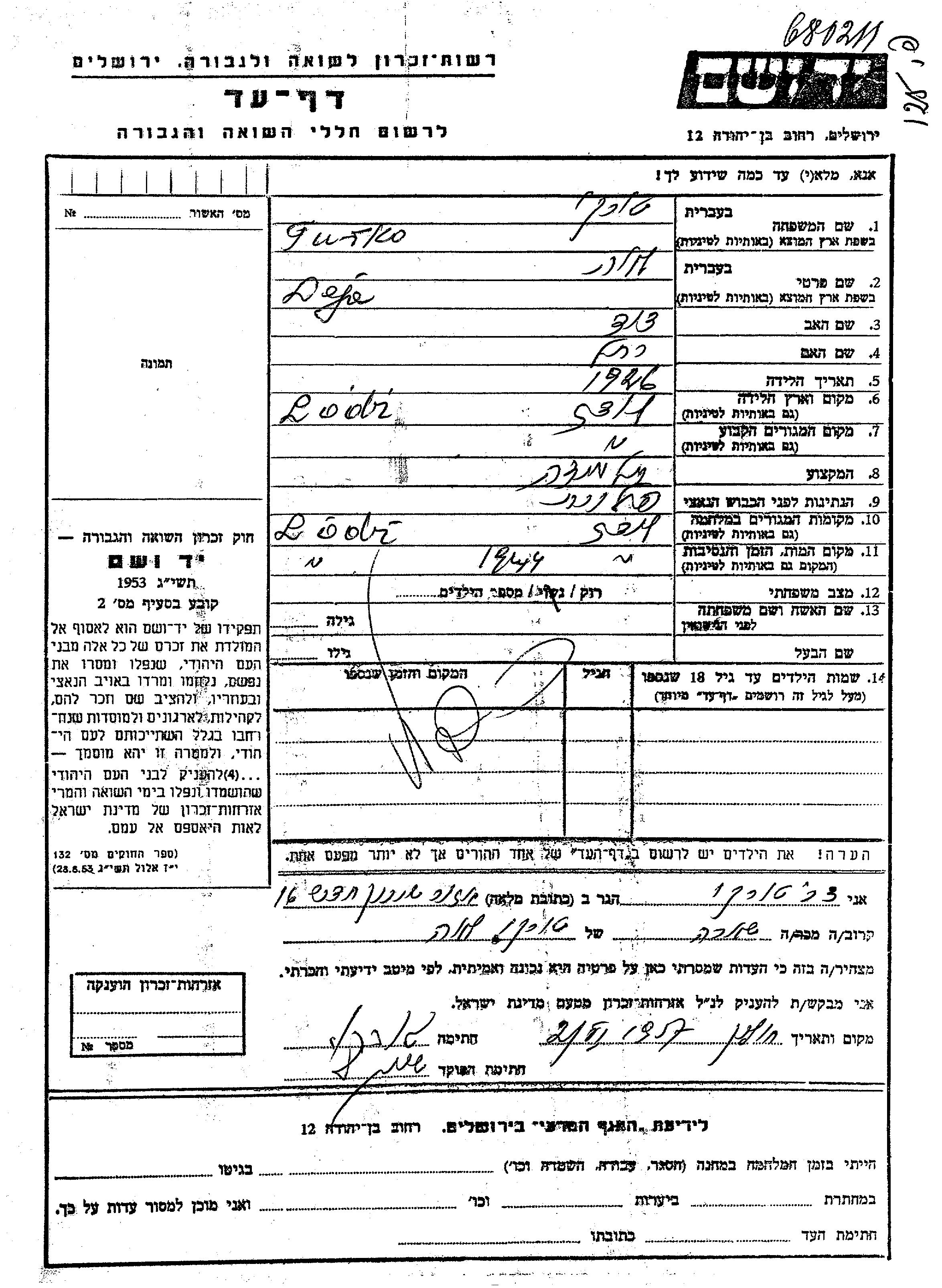 Leje Turko wurde im Jahr 1926 in Lodz, Polen geboren. Sie war die Tochter von David und Rakhel. Sie war Schüler/-in und Ledig. Vor dem Zweiten Weltkrieg lebte sie in Lodz, Polen. Während des Krieges war sie in Lodz, Polen.