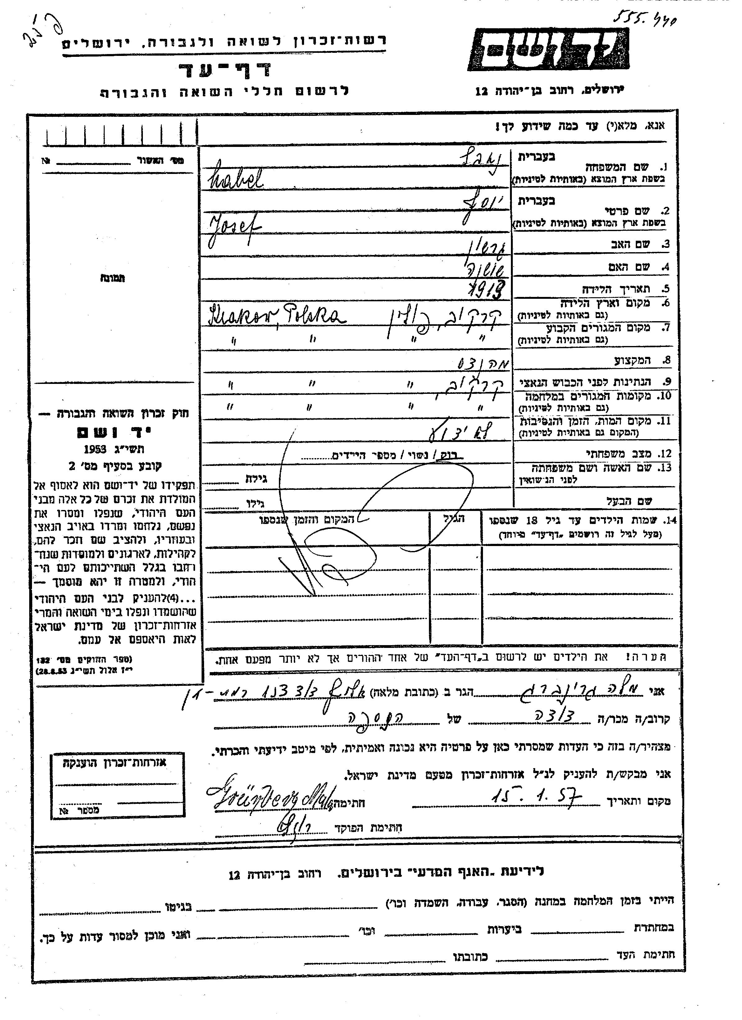Josef Habel Nebel wurde im Jahr 1913 in Krakow, Polen geboren. Er war der Sohn von Gershon und Shoshana. Er war Ingenieur und Ledig. Vor dem Zweiten Weltkrieg lebte er in Krakow, Polen. Während des Krieges war er in Krakow, Polen.
