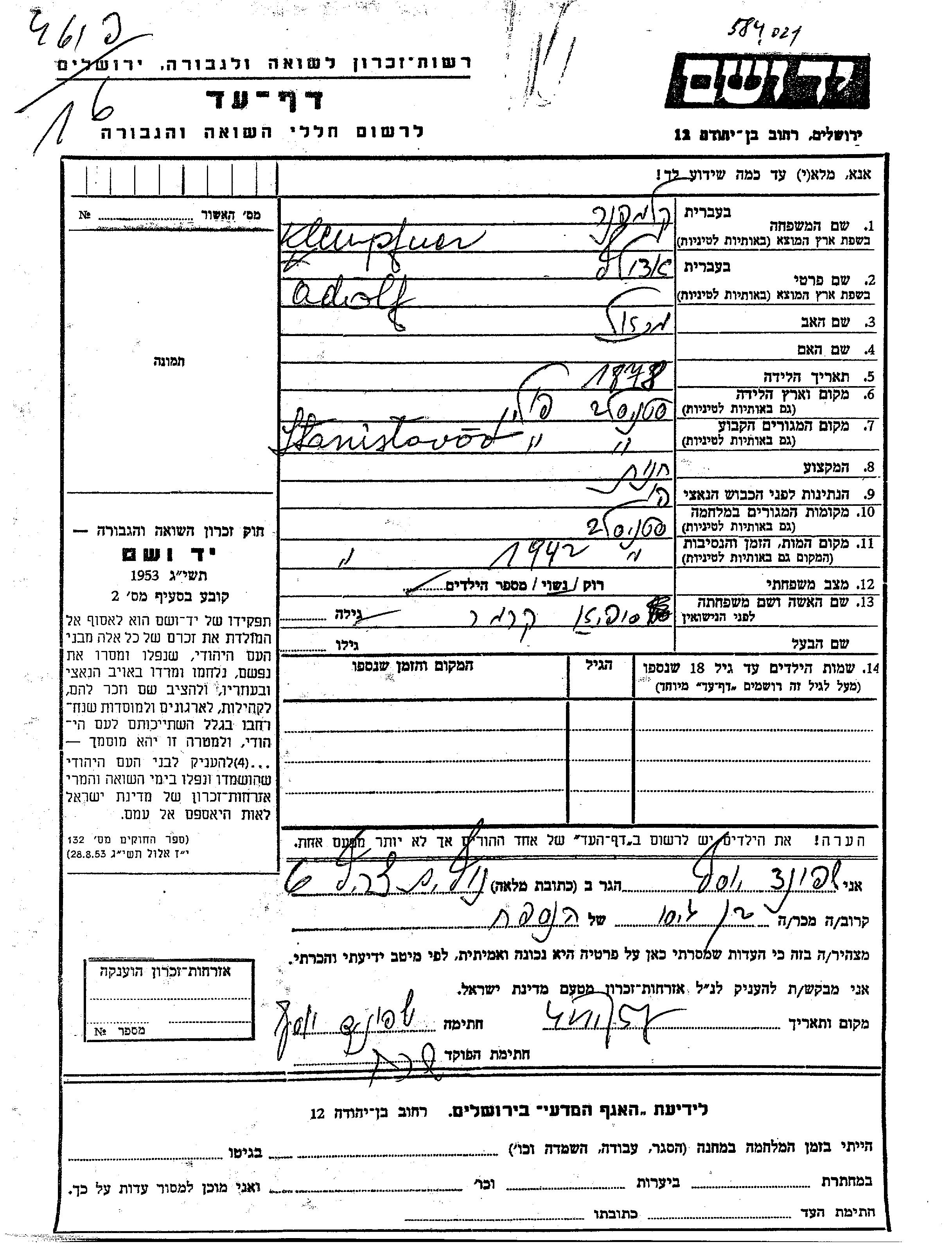 Adolf wurde in der Schoah ermordet. Todesort: Stanislowow, Polen im Jahr 1942.