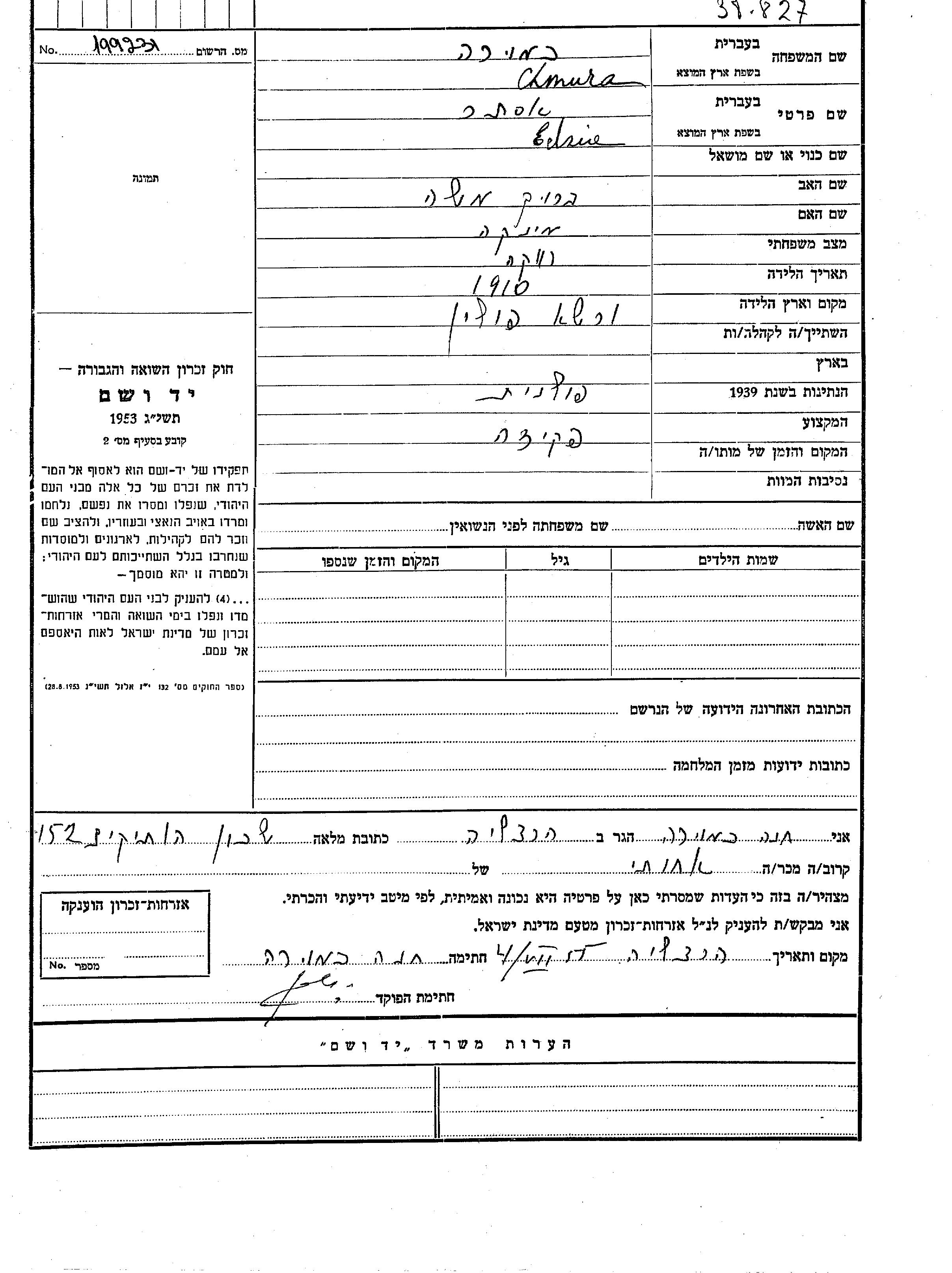Estrine Chmura wurde in Warsaw, Polen geboren. Sie war die Tochter von Barukh Moshe und Minka. Sie war Angestellte/-r. Vor dem Zweiten Weltkrieg lebte sie in Warsaw, Polen.