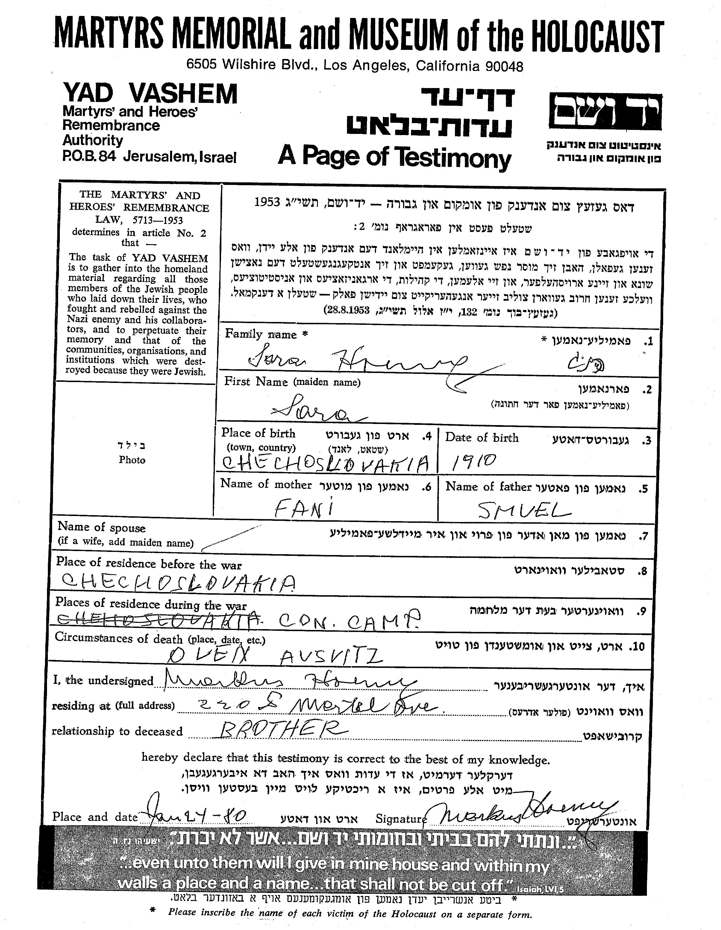 Sara wurde in der Schoah ermordet. Todesort: Auschwitz, Polen.