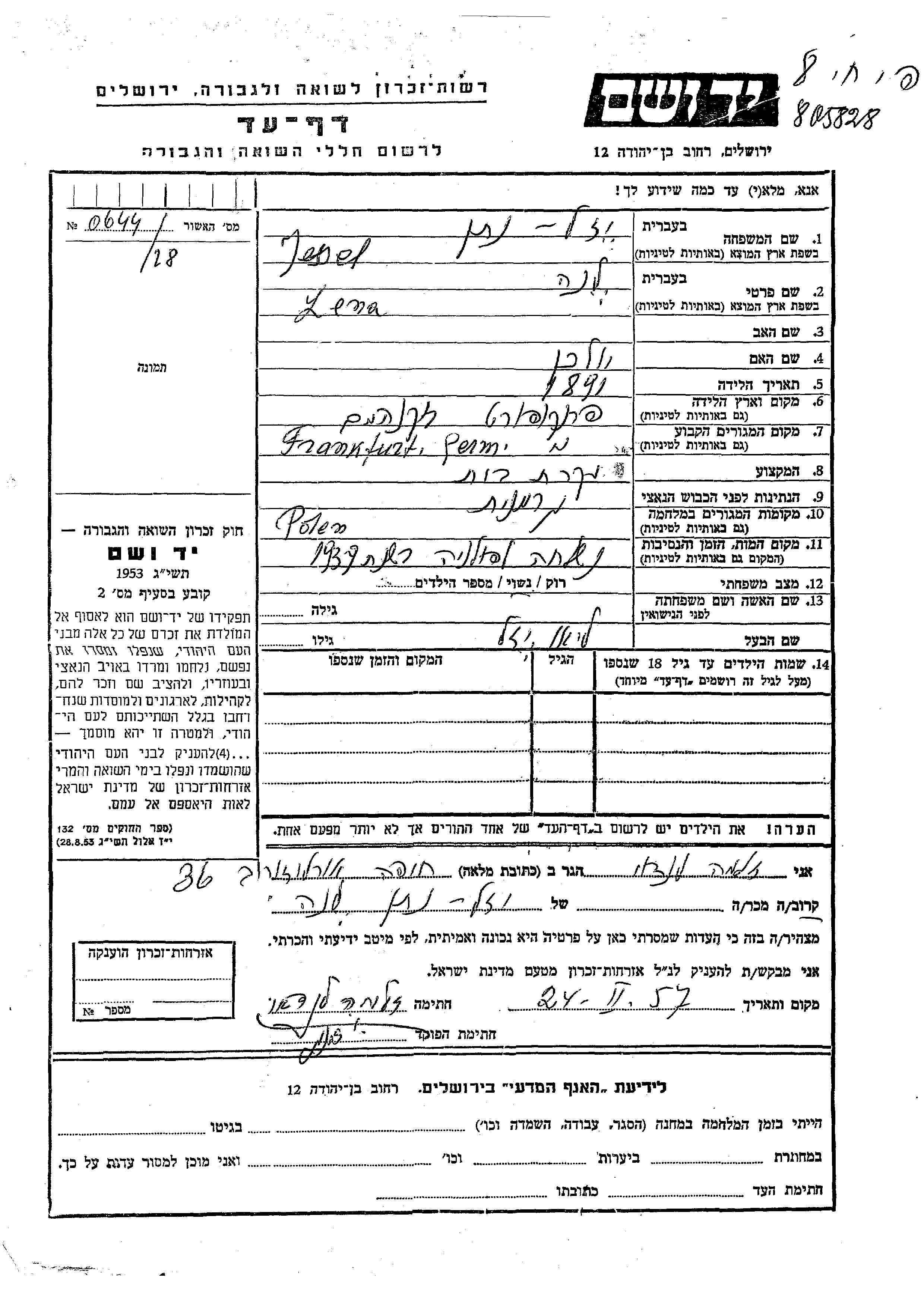 Lena Jessel Natan wurde im Jahr 1891 in Frankfurt, Deutsches Reich geboren. Sie war die Tochter von Yulia. Sie war Hausfrau und mit Leo Verheiratet. Vor dem Zweiten Weltkrieg lebte sie in Frankfurt, Deutsches Reich. Während des Krieges war sie in Polen.