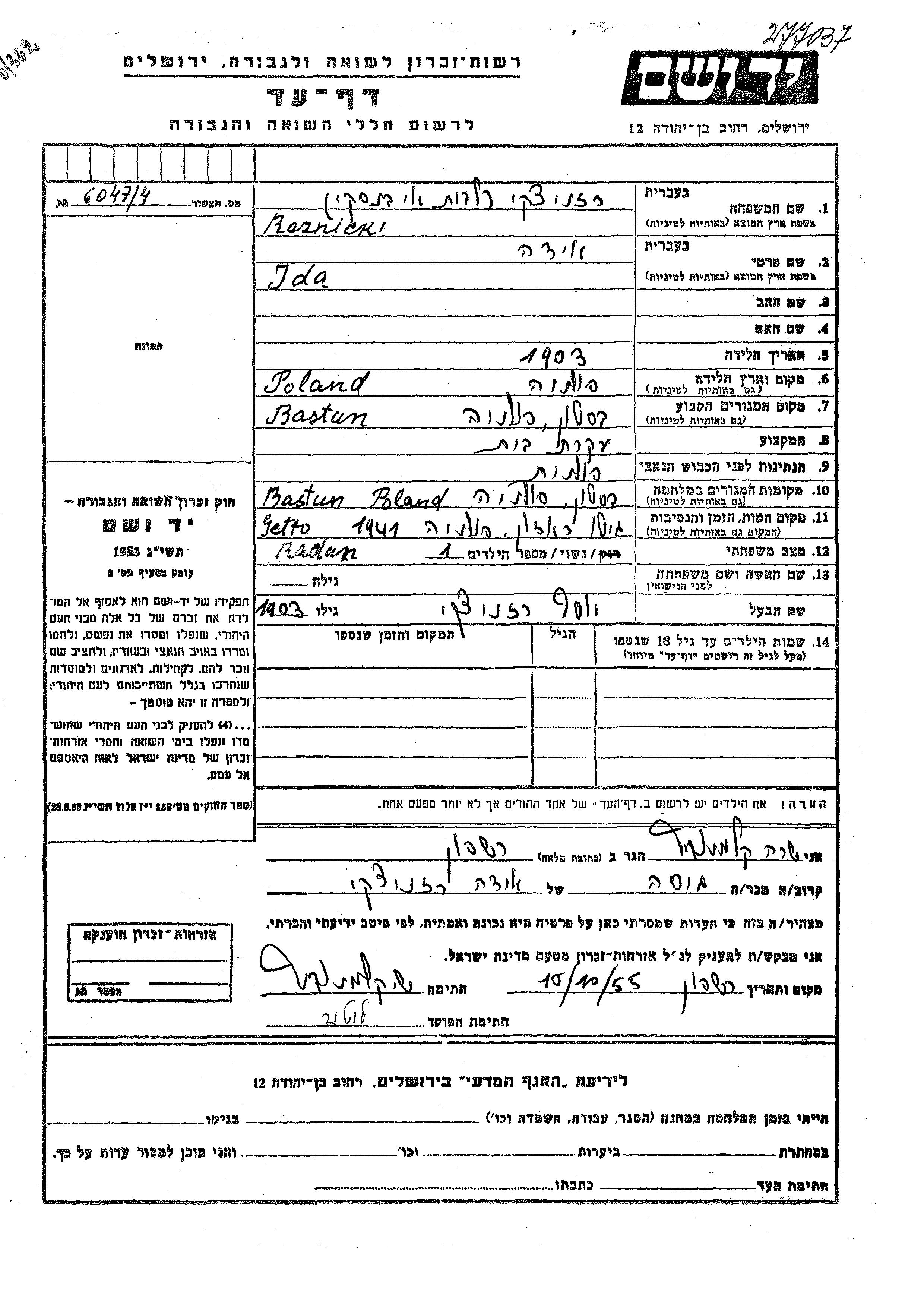 Ida wurde in der Schoah ermordet. Todesort: Radun, Polen im Jahr 1941.
