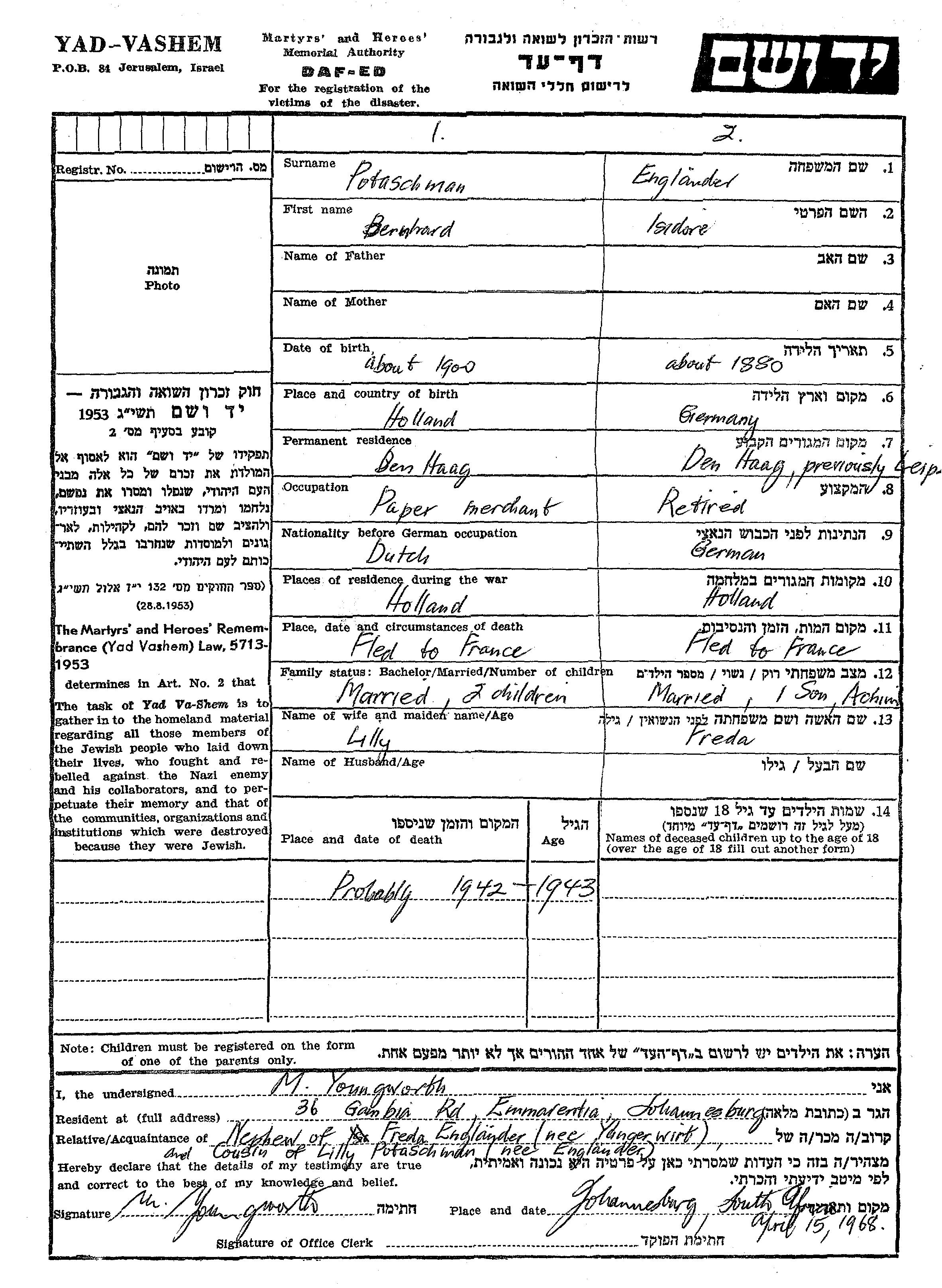 Suche nach einem Todesjahr im Zeitraum der Holocaust: 1933 bis 1945. Bitte wählen Sie 'Exakt' im Auswahlmenü, um nur nach einem einzelnen Jahr zu suchen, alternativ können Sie die flexibleren Optionen '+/- 2 Jahre' oder '+/- 5 Jahre' wählen.