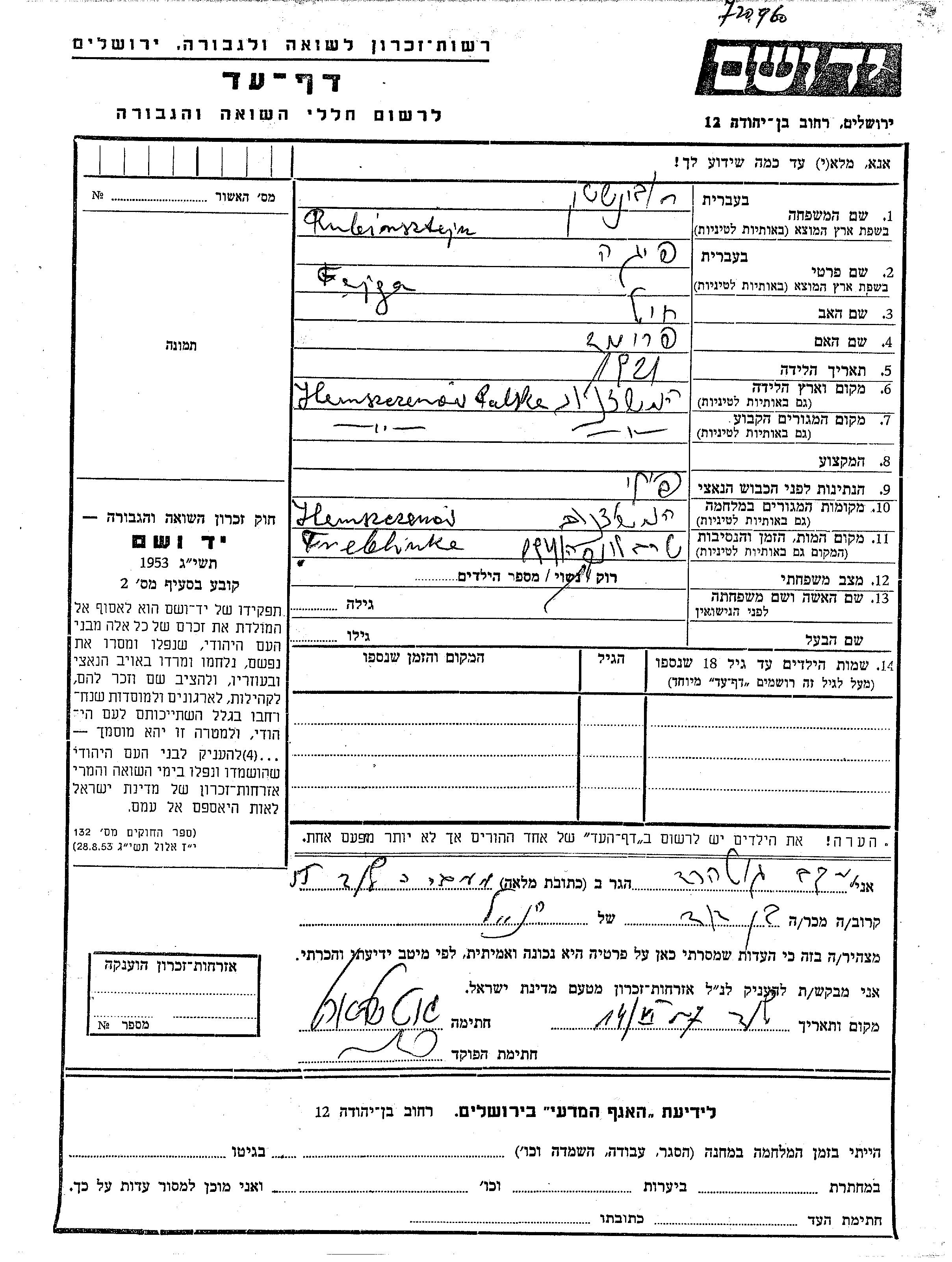 Fejga Rubinstejn wurde im Jahr 1921 in Amszczonow, Polen geboren. Sie war die Tochter von Khil und Frumet. Sie war Ledig. Vor dem Zweiten Weltkrieg lebte sie in Amszczonow, Polen. Während des Krieges war sie in Amszczonow, Polen.