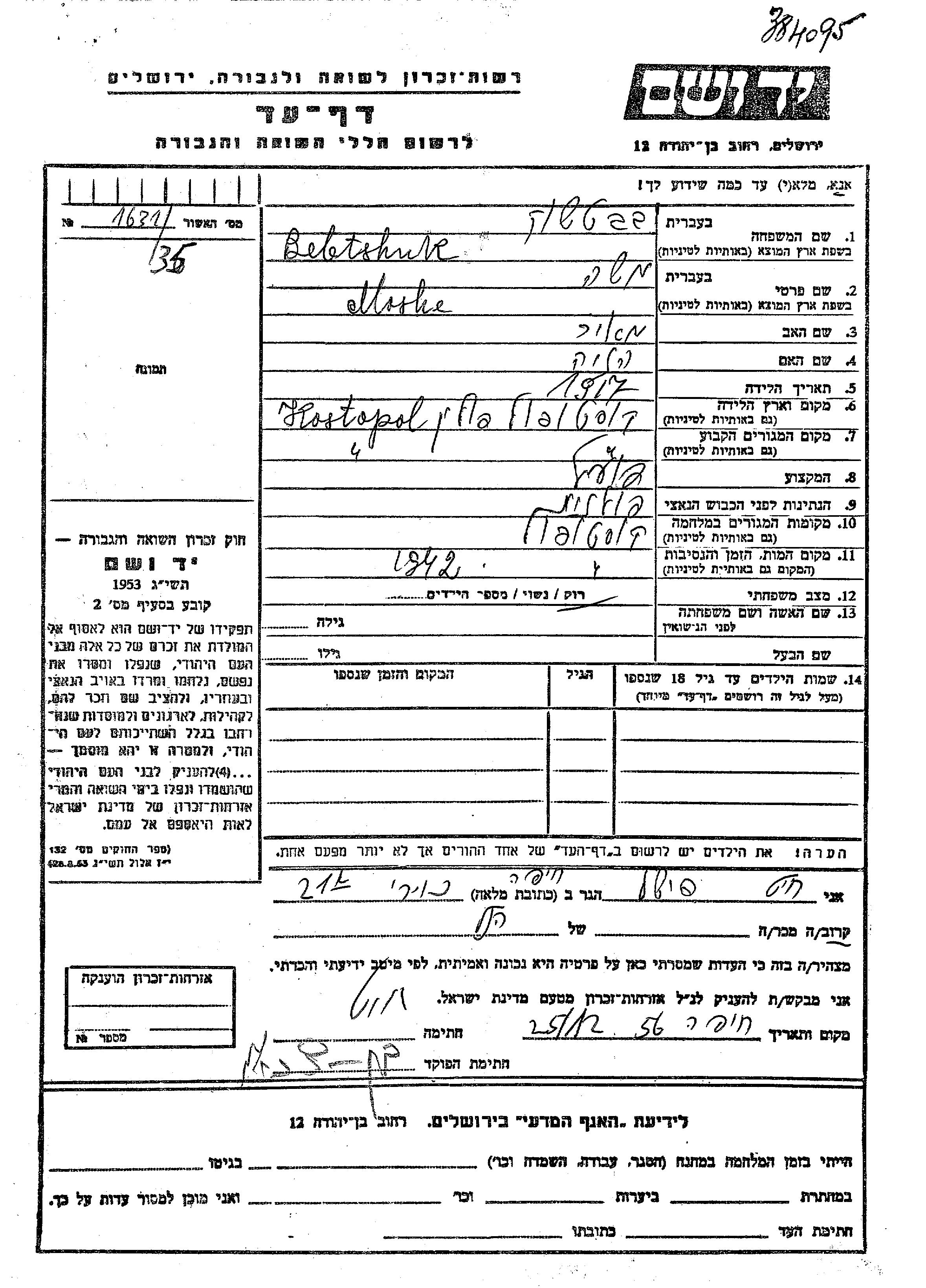 Moshe wurde in der Schoah ermordet. Todesort: Kostopol, Polen im Jahr 1942.