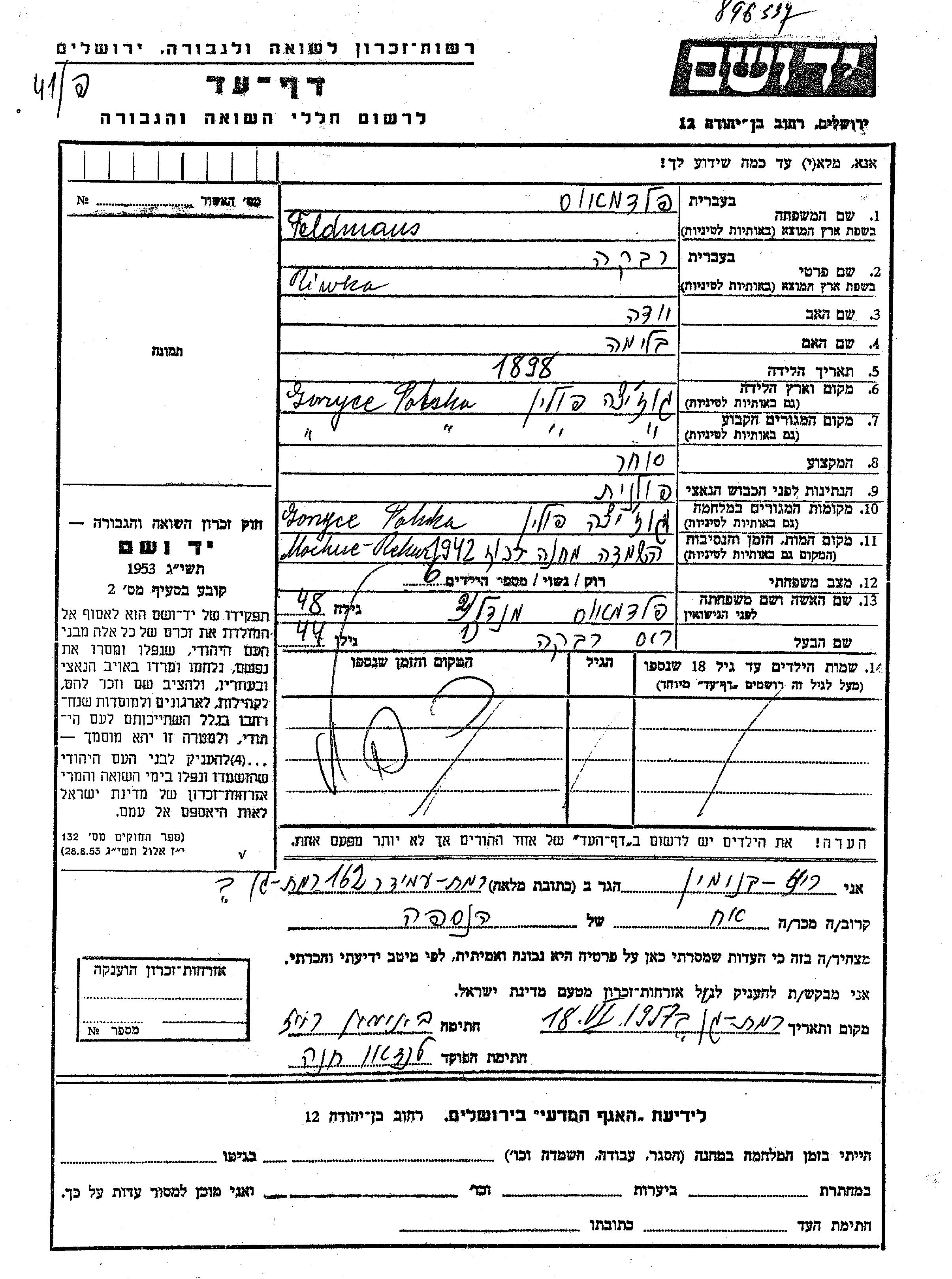 Riwka Feldmaus, geb. Ris wurde im Jahr 1898 in Gorzyce, Polen geboren. Sie war die Tochter von Iuda und Blima. Sie war Kaufmann/-frau und mit Mendel Verheiratet. Vor dem Zweiten Weltkrieg lebte sie in Gorzyce, Polen. Während des Krieges war sie in Gorzyce, Polen.