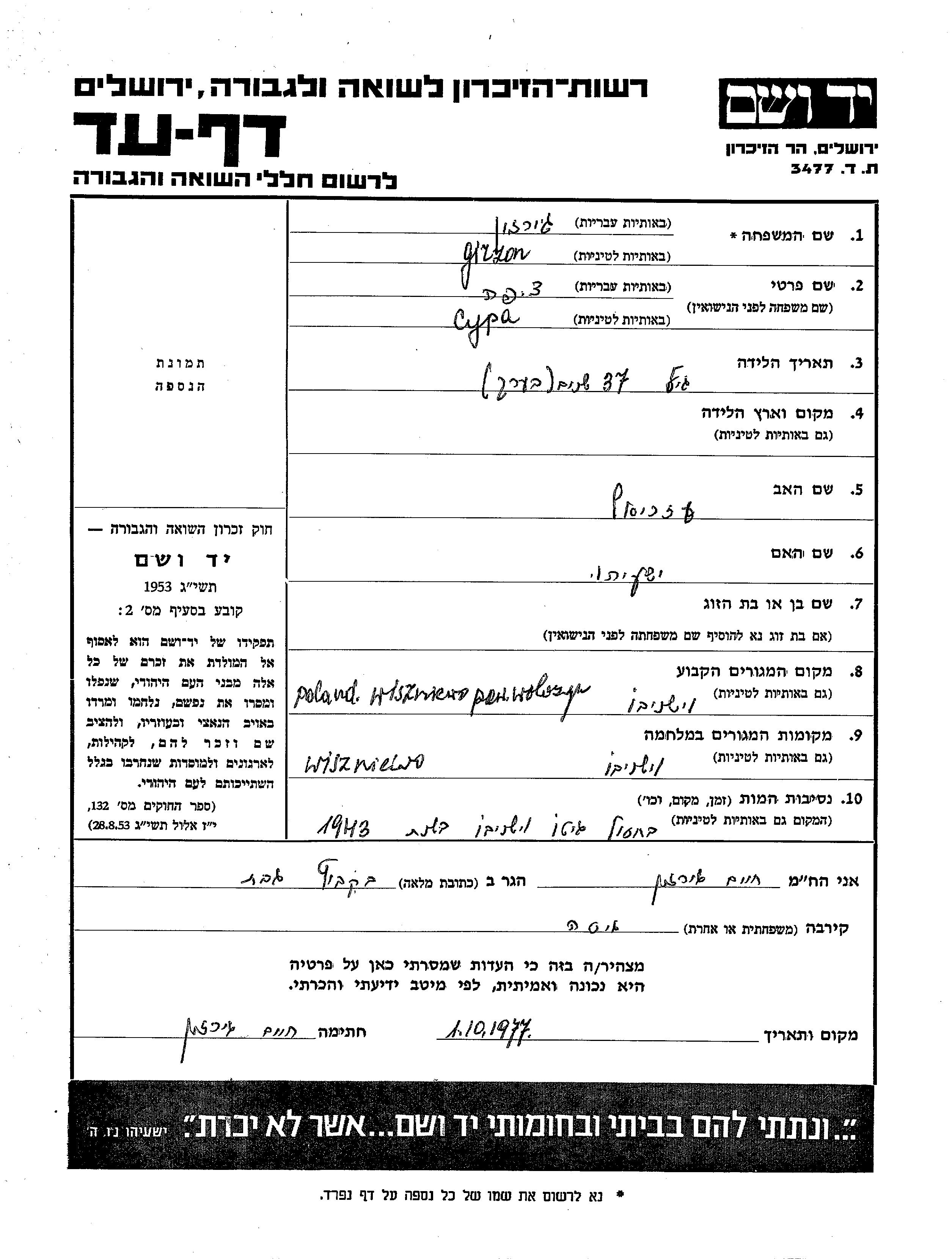 Cypa wurde in der Schoah ermordet. Todesort: Wiszniew, Polen im Jahr 1943.