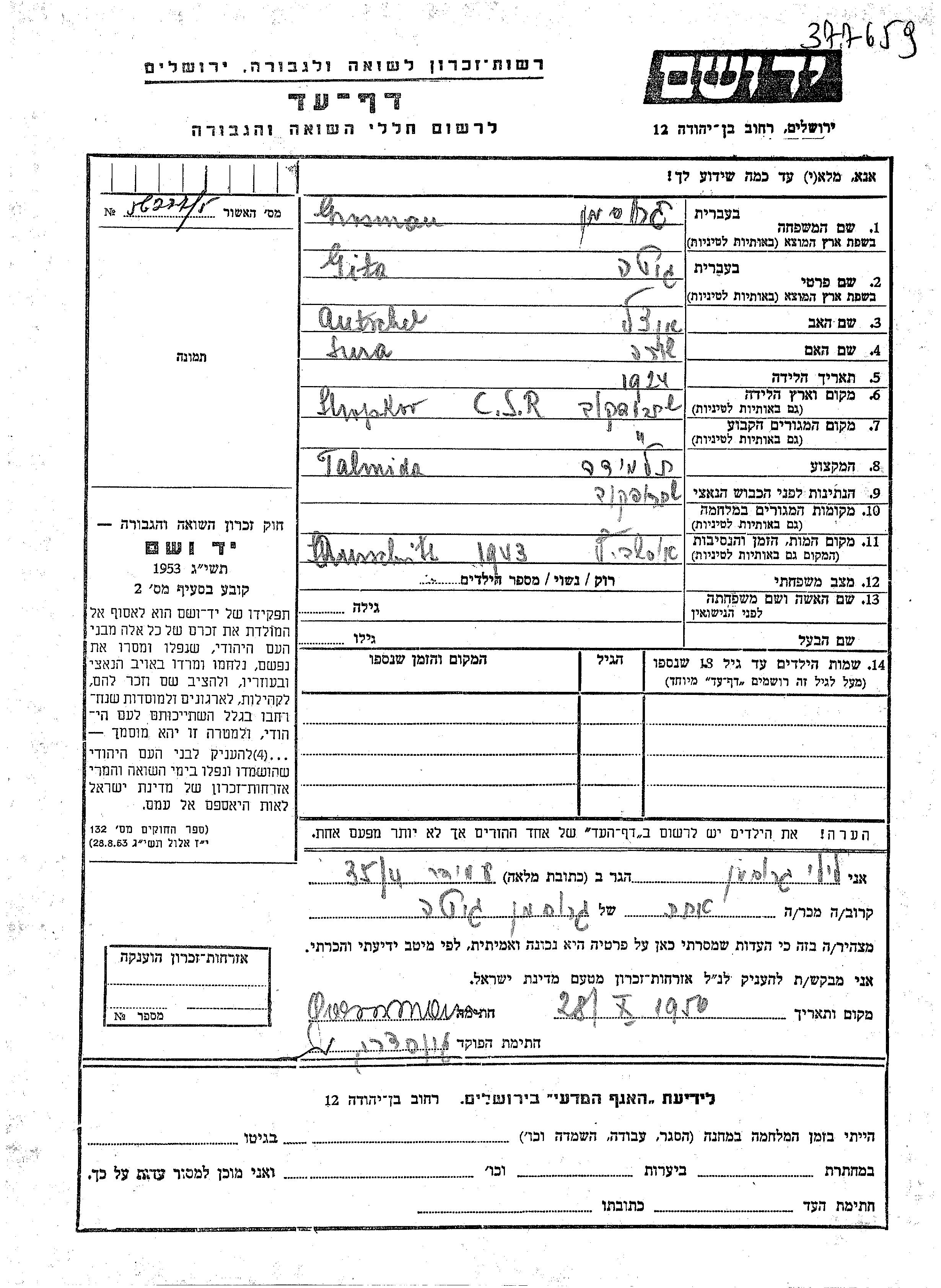 Gita wurde in der Schoah ermordet. Todesort: Auschwitz, Polen im Jahr 1943.