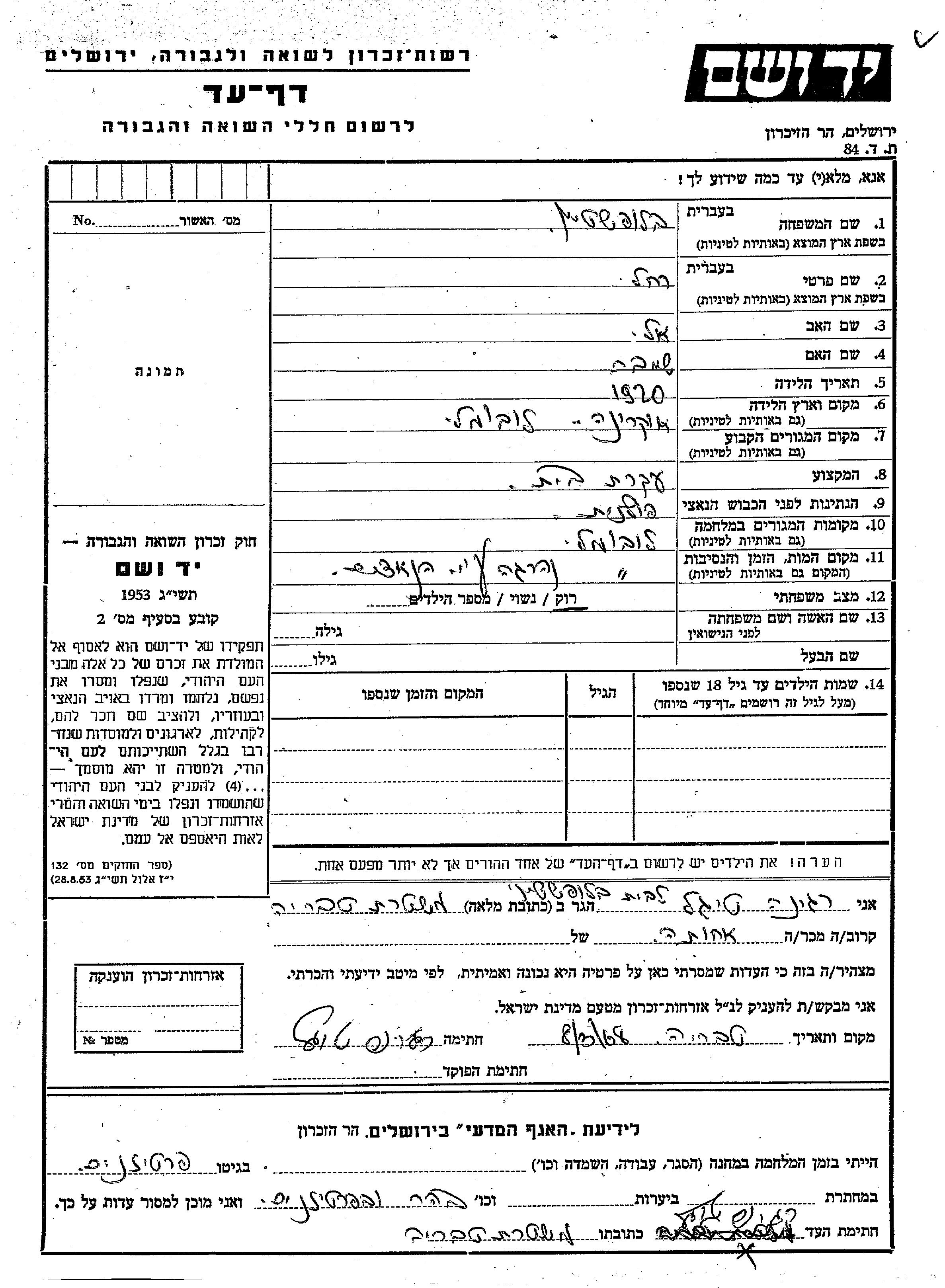Rakhel Blofshtein wurde im Jahr 1920 in Luboml, Polen geboren. Sie war die Tochter von Eli und Sheiva. Sie war Hausfrau und Ledig. Während des Krieges war sie in Luboml, Polen.