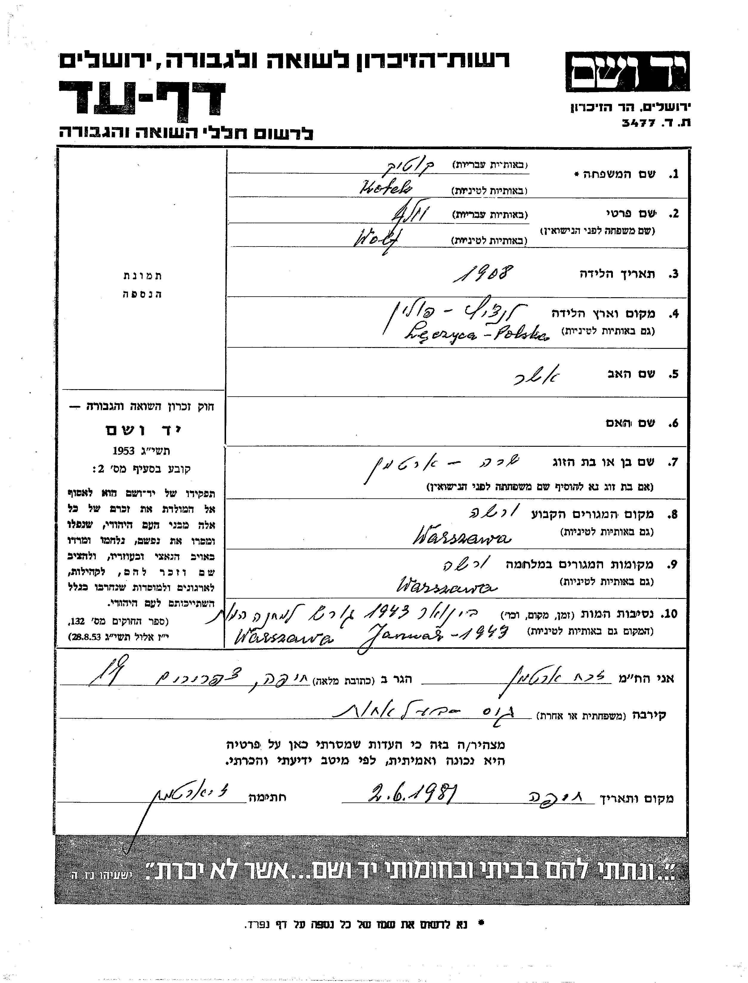 Wolf wurde in der Schoah ermordet. Todesort: Warszawa, Polen im Jahr 01/1943.