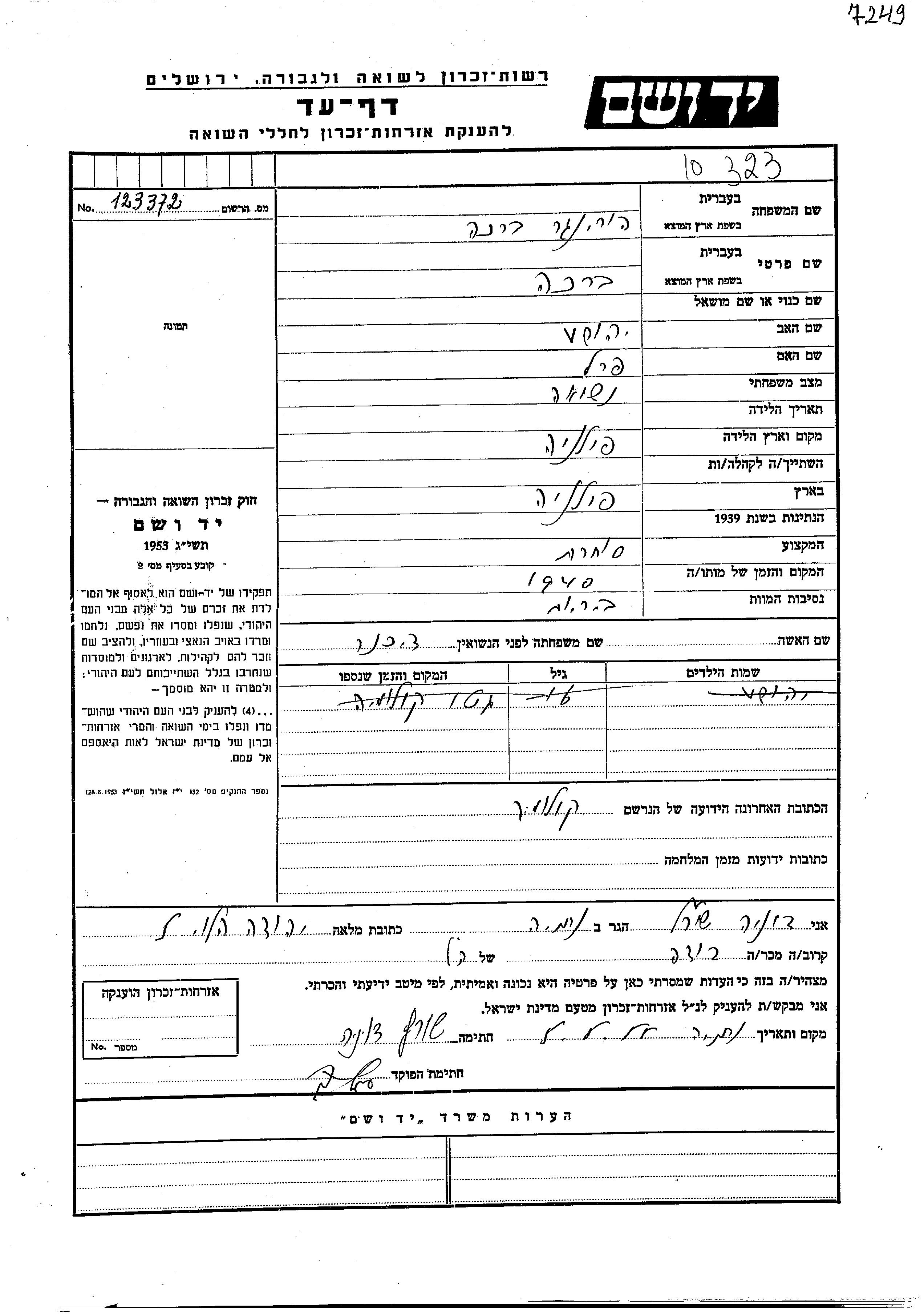 Brakha Horinger, geb. Tzikhner wurde in Polen geboren. Sie war die Tochter von Yehoshua und Perel. Sie war Kaufmann/-frau und Verheiratet. Vor dem Zweiten Weltkrieg lebte sie in Kolomyja, Polen. Während des Krieges war sie in Kolomyja, Polen.