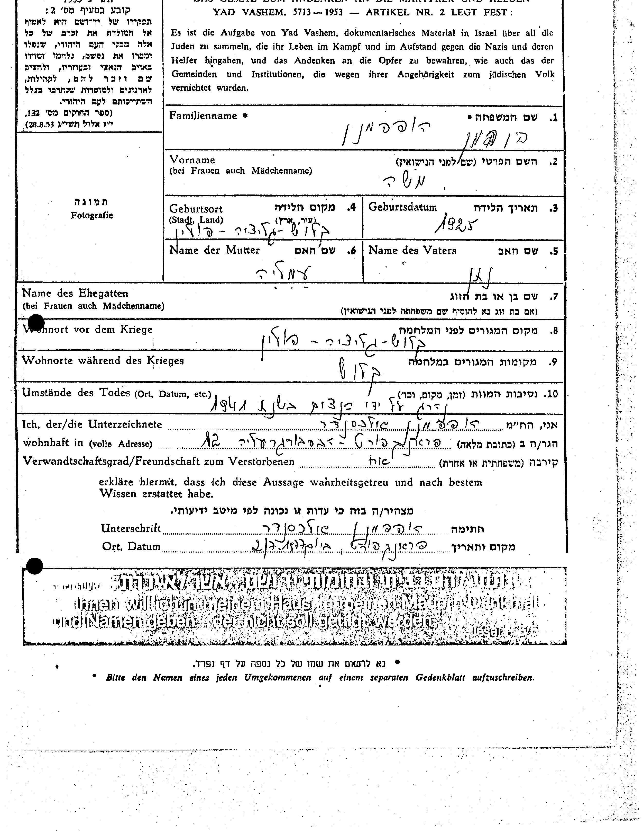 Moshe wurde in der Schoah ermordet. Todesort: unbekannt im Jahr 1941.