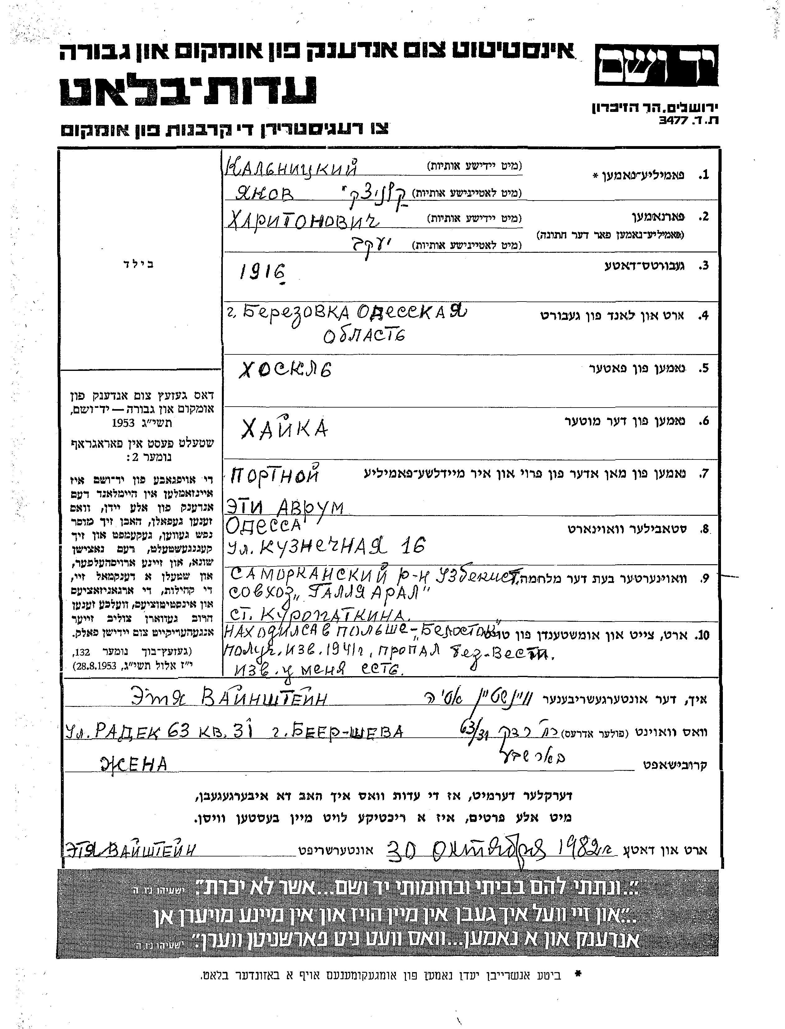 Iakov wurde in der Schoah ermordet. Todesort: Belostok, Polen im Jahr 1941.