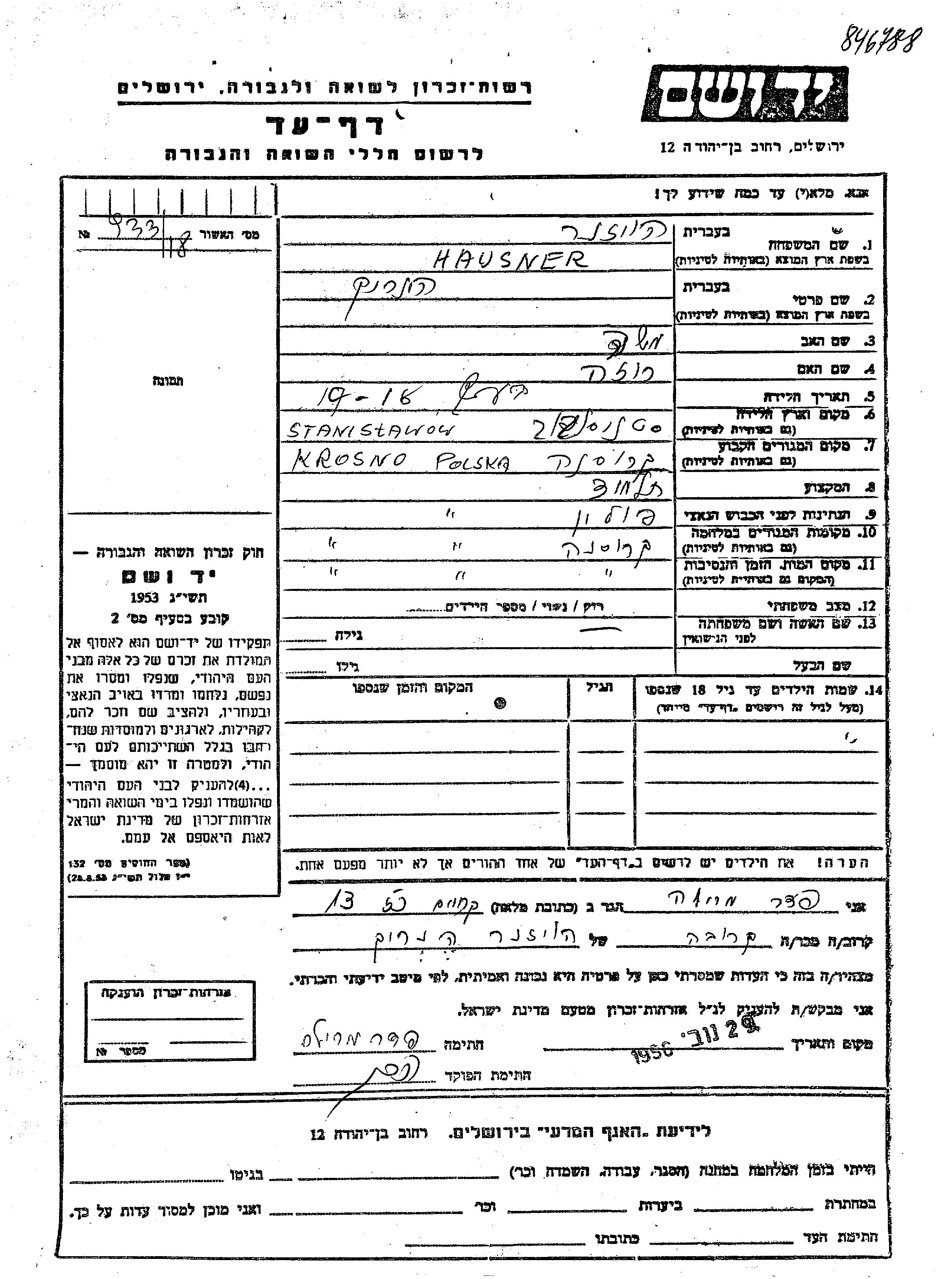 Henrik Hausner Heizner wurde in Stanislawow, Polen geboren. Er war der Sohn von Moshe und Roza. Er war Schüler/-in und Ledig. Vor dem Zweiten Weltkrieg lebte er in Krosno, Polen. Während des Krieges war er in Krosno, Polen.
