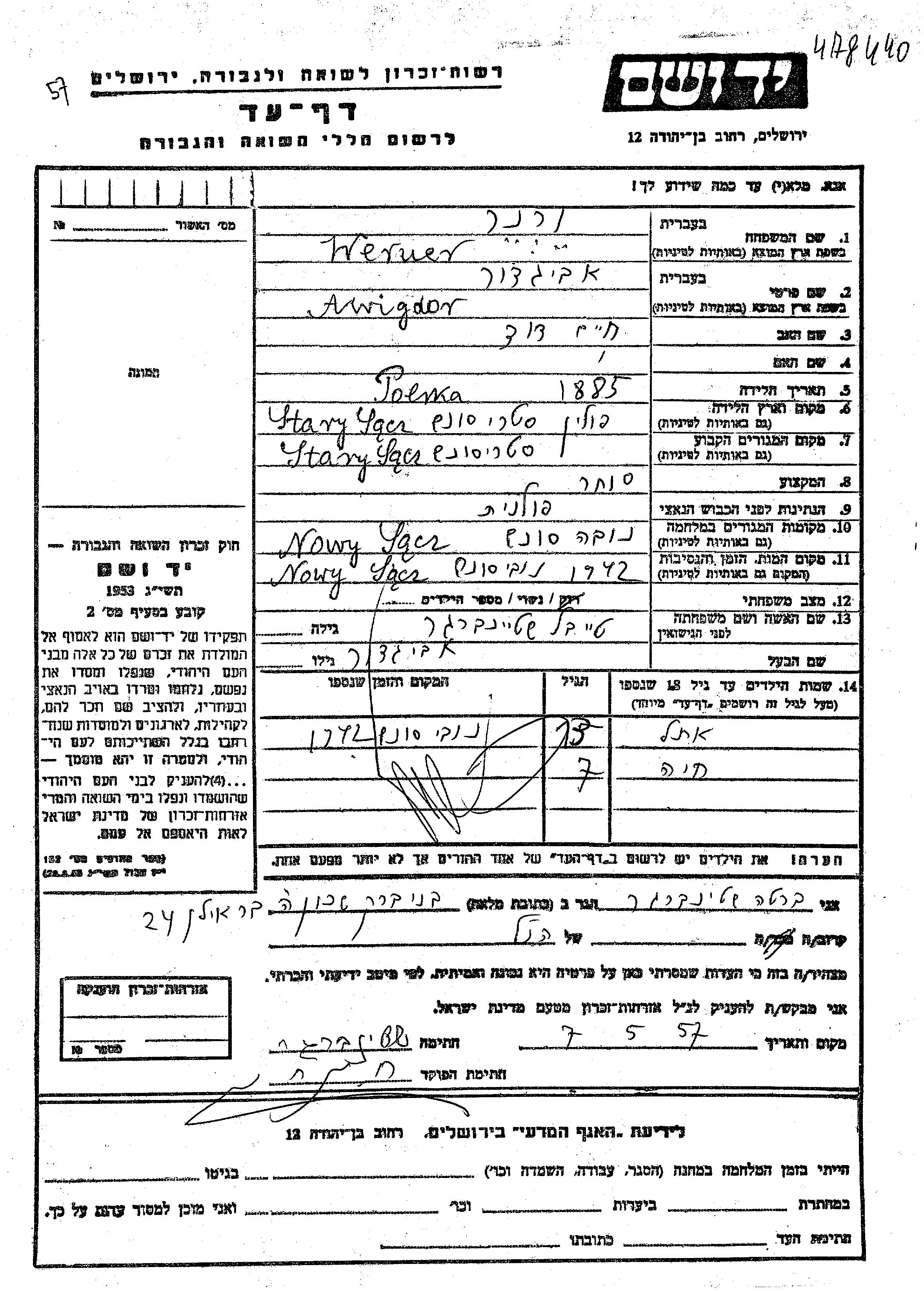 Awigdor wurde in der Schoah ermordet. Todesort: Nowy Sacz, Polen im Jahr 1942.