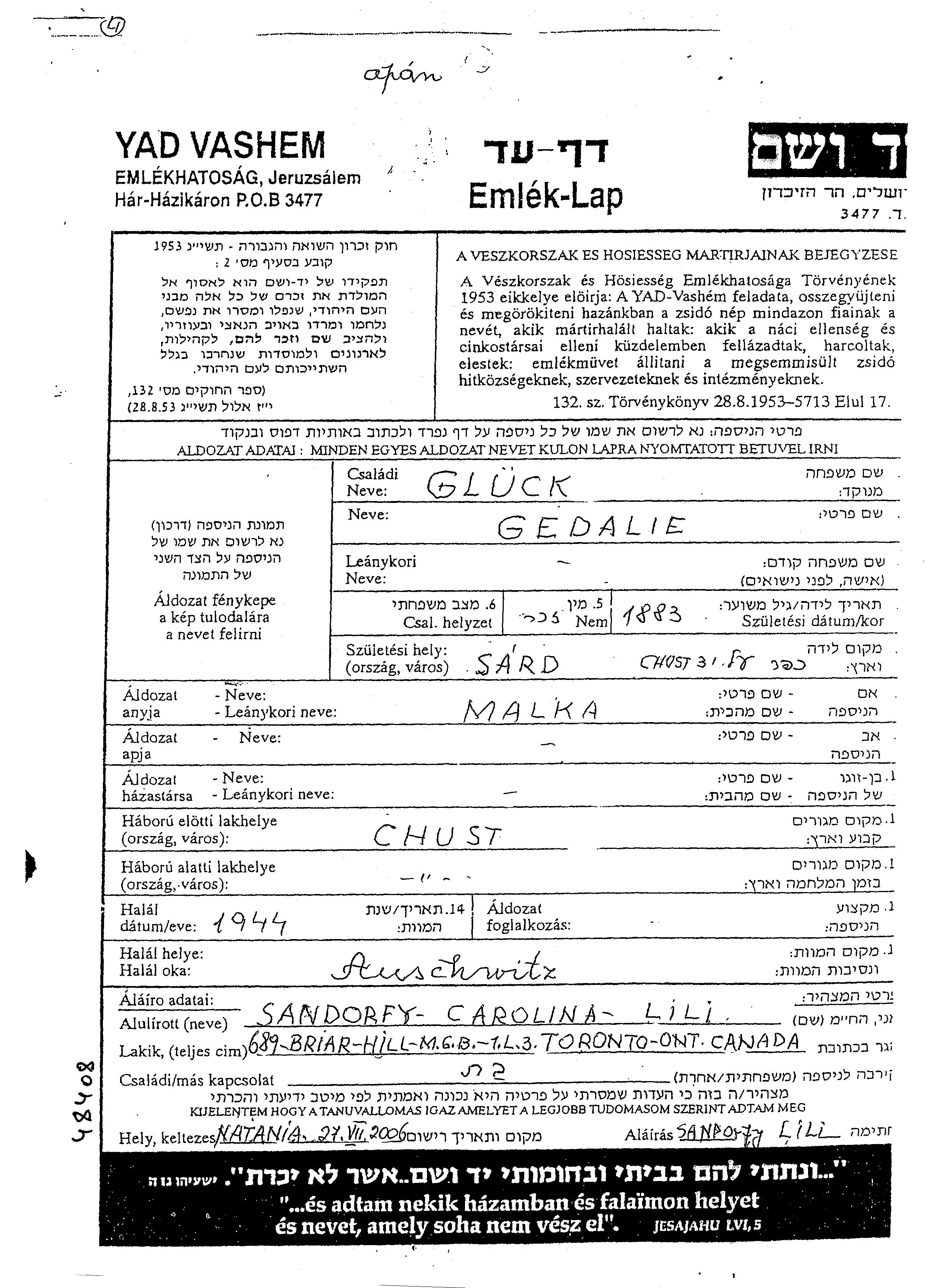 Gedalie wurde in der Schoah ermordet. Todesort: Auschwitz, Polen im Jahr 1944.