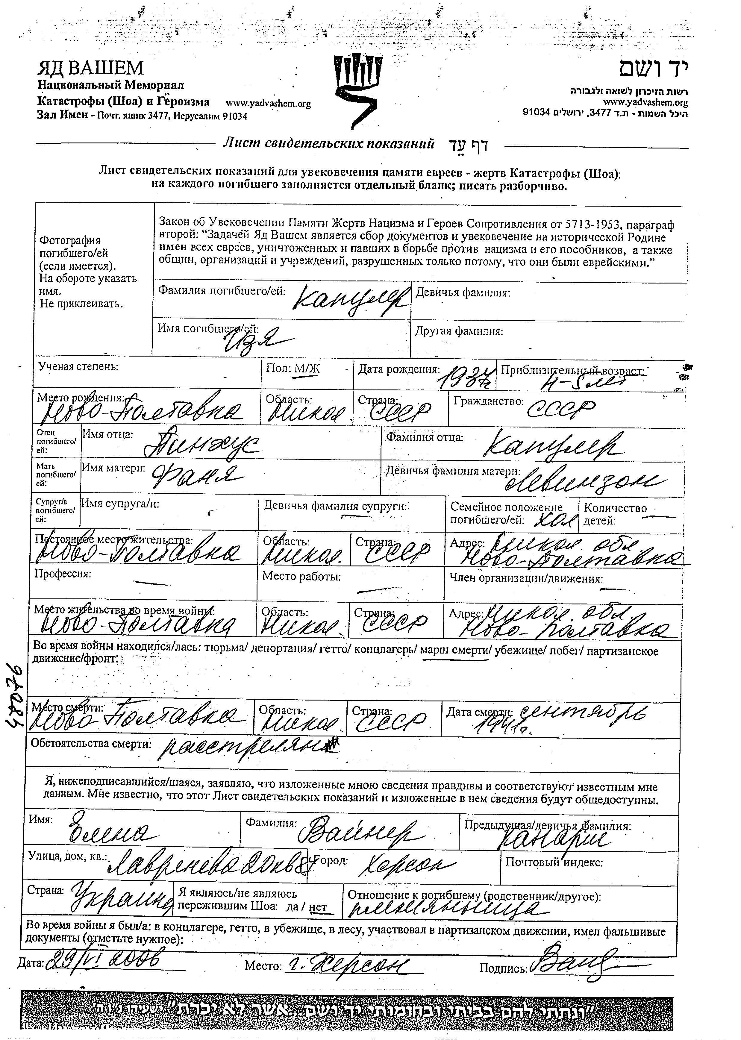 Izya wurde in der Schoah ermordet. Todesort: Novo Poltavka, Ukraine (UdSSR) im Jahr 09/1941.